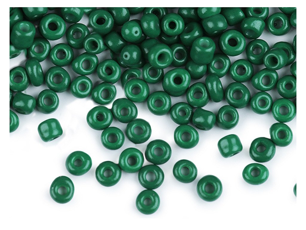 Korálky č. QK12 - tmavě zelené nemají metalický lesk.