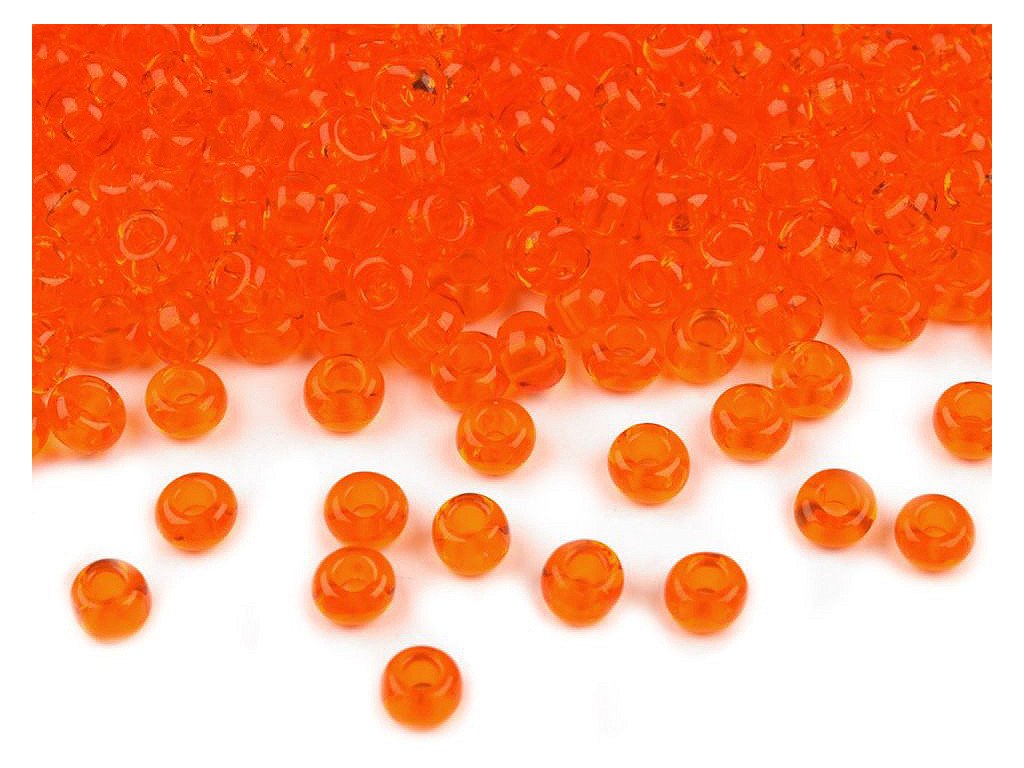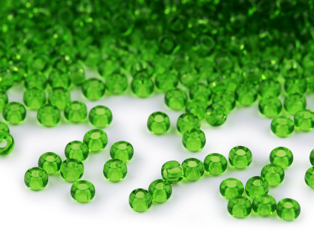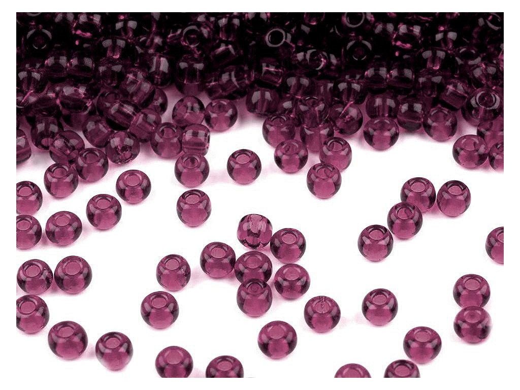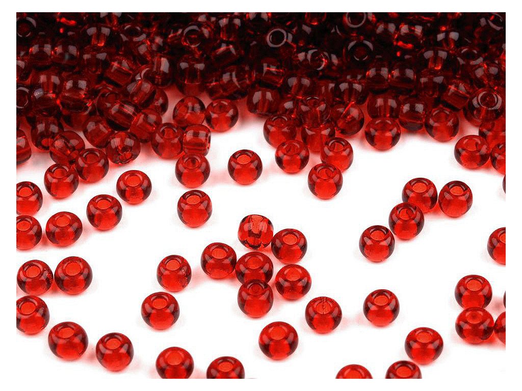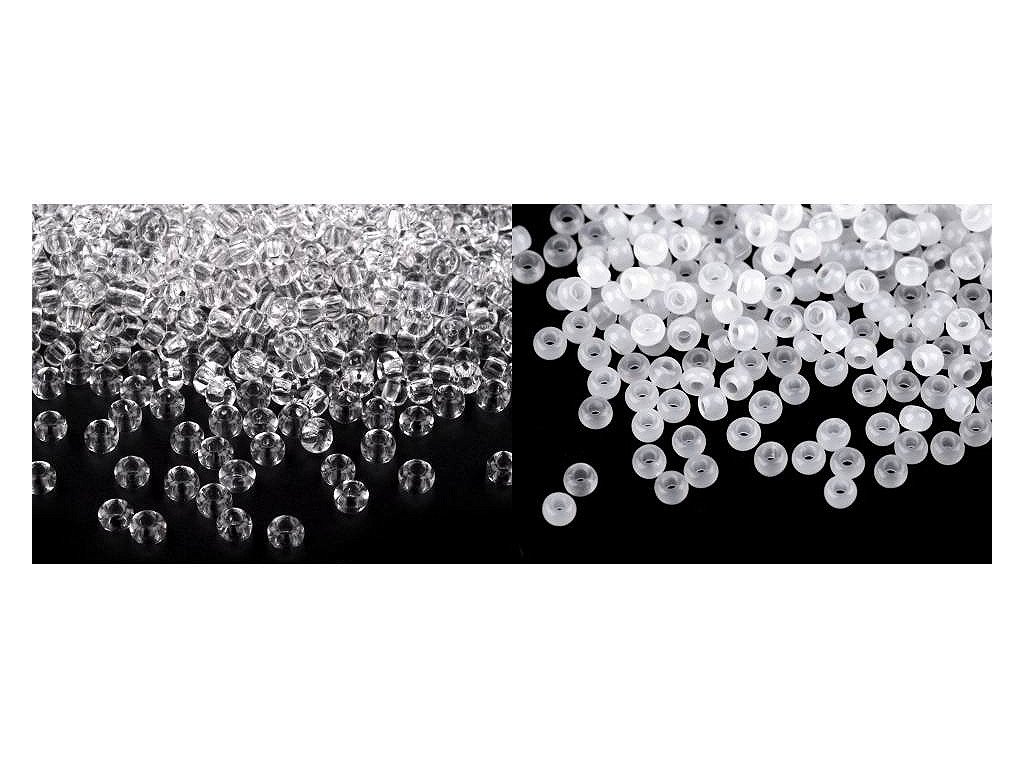 Skleněné průhledné korálky jsou díky své pravidelnosti a barevné stálosti vhodné pro šité projekty. Jablonecký rokajl je pověstný svou kvalitou a pravidelností tvaru. Rokajlem můžete zkusit i vyšívat, zkušení korálkáři vyšívají doslova celé obrazy.