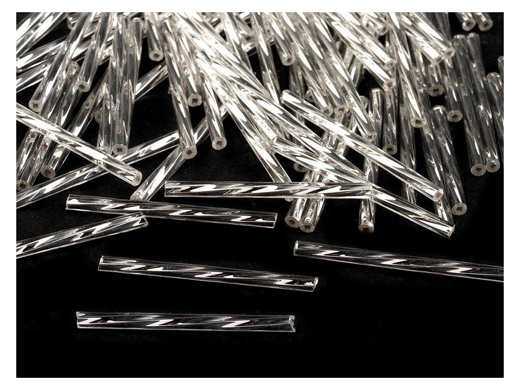 Prvotřídní jablonecký rokajl kroucené tyčky využijete především při výrobě vánočních ozdob jako jsou hvězdy, vločky, ozdoby na stromeček apod. Díky stříbrnému průtahu vyniká vysokým leskem. Je vhodný na výrobu šperků určených do společnosti, díky třpytu působí velice luxusním dojmem. Je vhodný do šitých šperků, kde se můžete spolehnout na jeho pravidelnost.