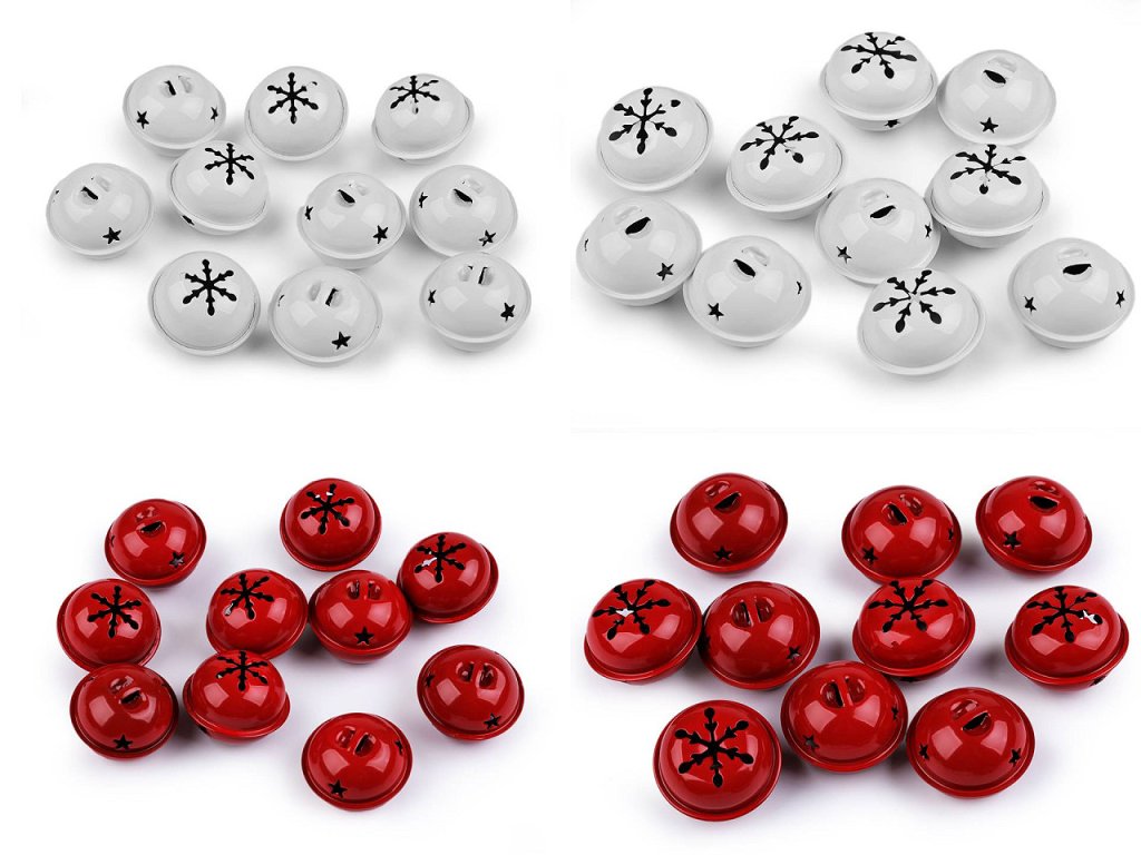 Sada kovových rolniček bude působivou dekorací na vánočním stromečku, věnci, dveřích apod. Jemně zvoní, nahoře mají otvor na provlečení šňůrky nebo háčku. Jsou zabalené v uzavíratelném sáčku.