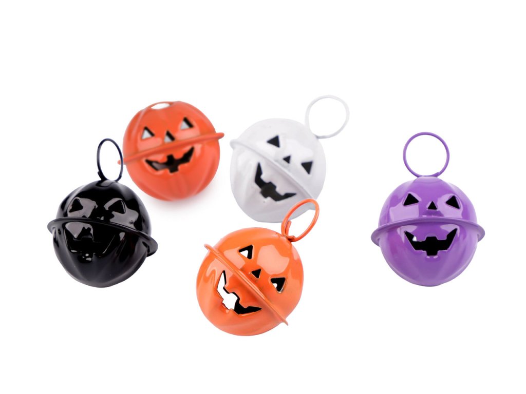 Kovové rolničky v podobě dýně jsou působivou dekorací na Halloween. Ozdobí párty stůl, pytlíky s nadílkou, kostýmy, věnce, dveře apod. Jemně zvoní, nahoře mají kroužek pro provléknutí šňůry či stuhy.