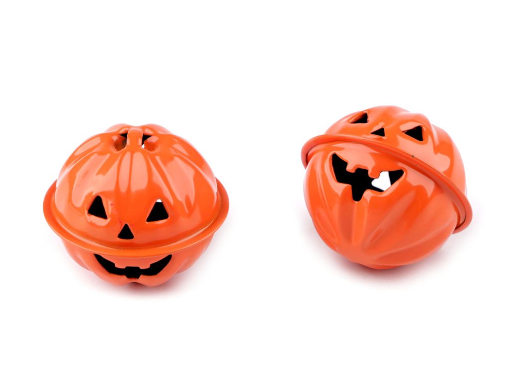 Sada kovových rolniček dýní bude působivou dekorací na Halloween. Působivě ozdobí párty stůl, pytlíky s nadílkou, kostýmy, věnce, dveře apod. Jemně zvoní, nahoře mají otvor na provlečení šňůrky nebo háčku.