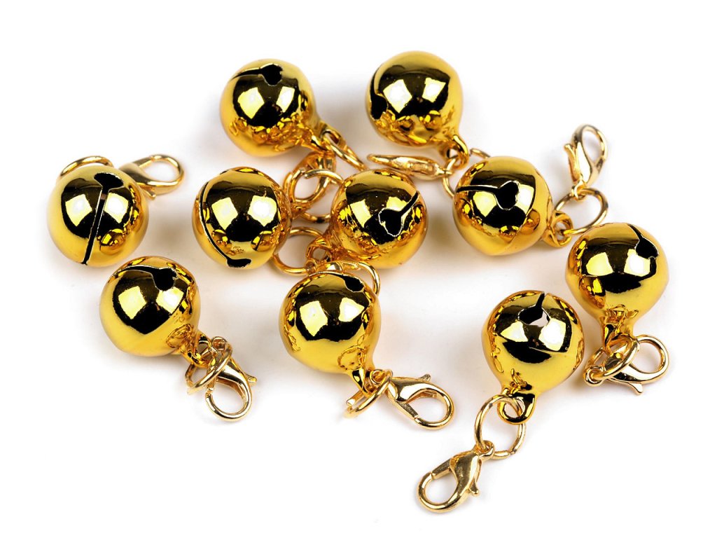 Kovové rolničky vám poslouží jako dekorace. Nahoře mají malou karabinku, díky které můžete rolničku připnout ke klíčům, poutku zipu, ke kabelce apod. Jemně zvoní, jsou vhodné i na zavěšení do vánočních věnců a jiných dekorací.