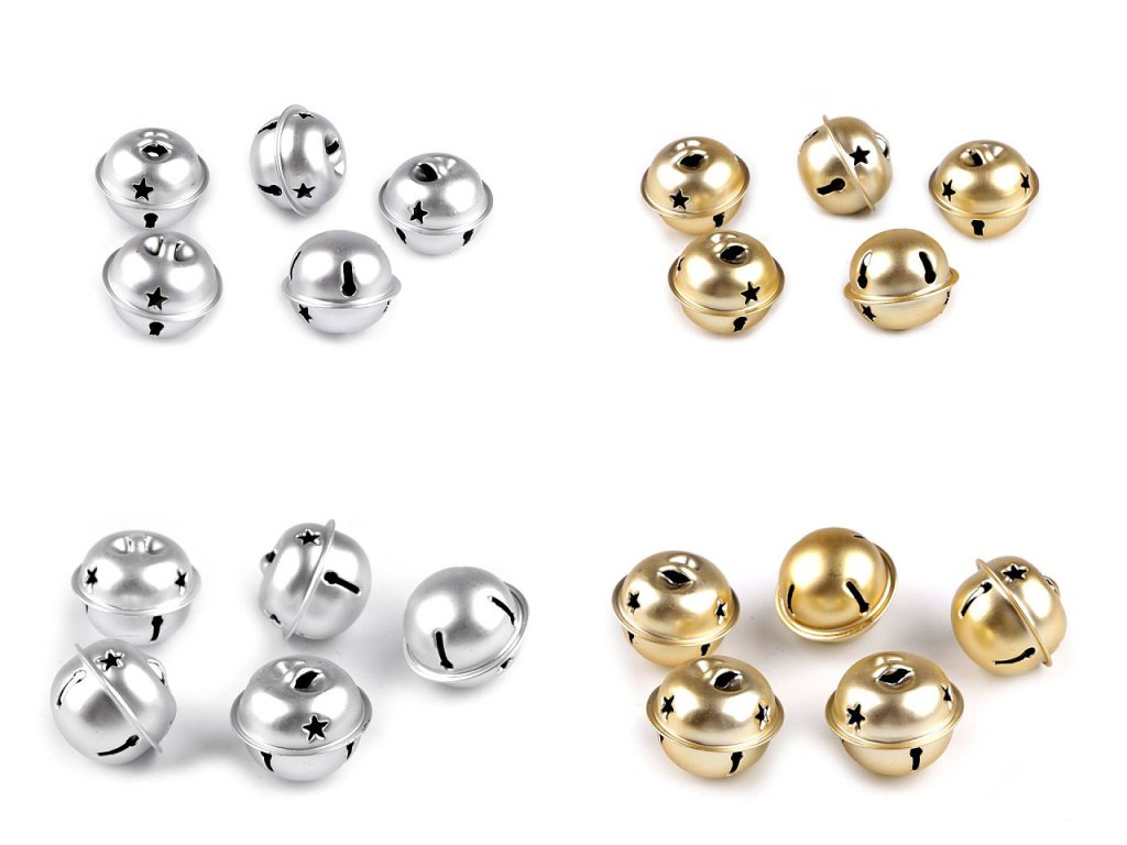 Sada matných kovových rolniček vynikne jako působivá dekorace na vánočním stromečku, věnci, dveřích apod. Jemně zvoní, nahoře mají otvor na provlečení šňůrky nebo háčku.