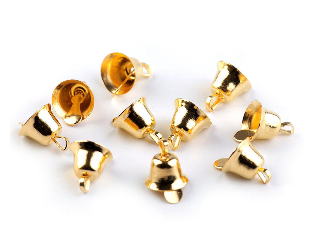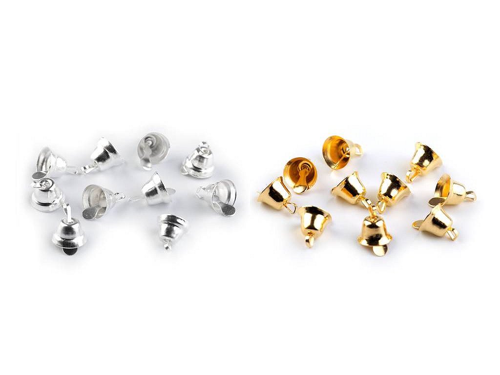 Průměr zvonečku je 11 mm, výška 7 mm bez úchytu.U některých zvonečků může chybět jazýček, takže nebudou zvonit. Zvonečky jsou určeny k dekoraci, vhodné pro zdobení různých vazeb a adventních věnců.
