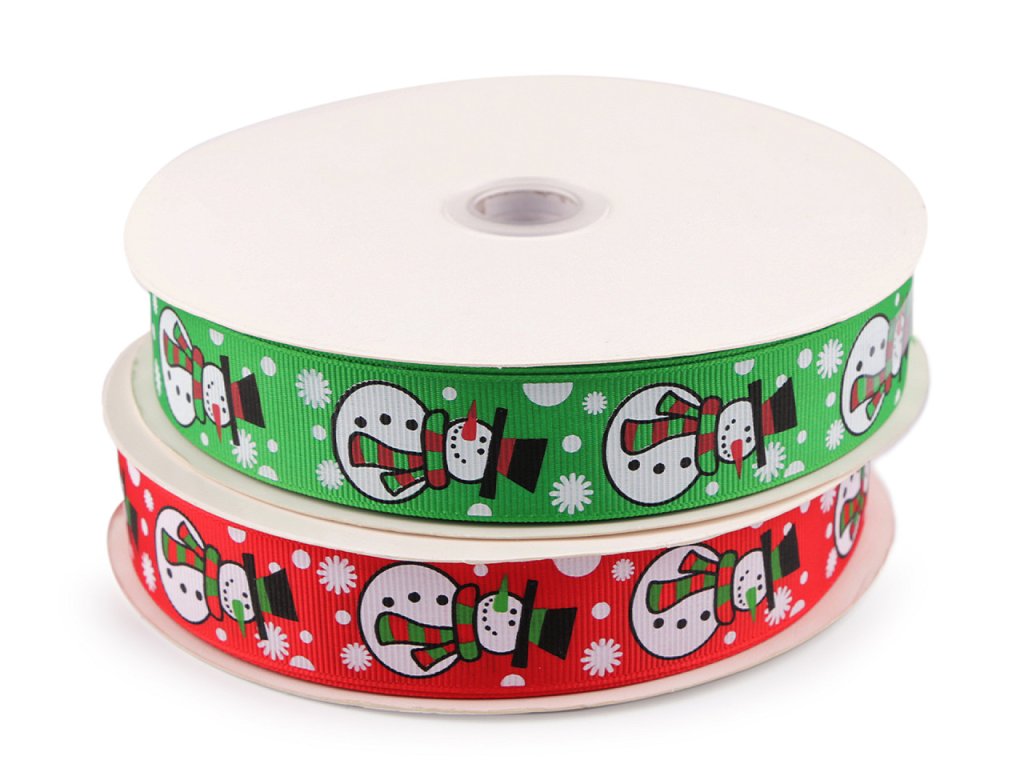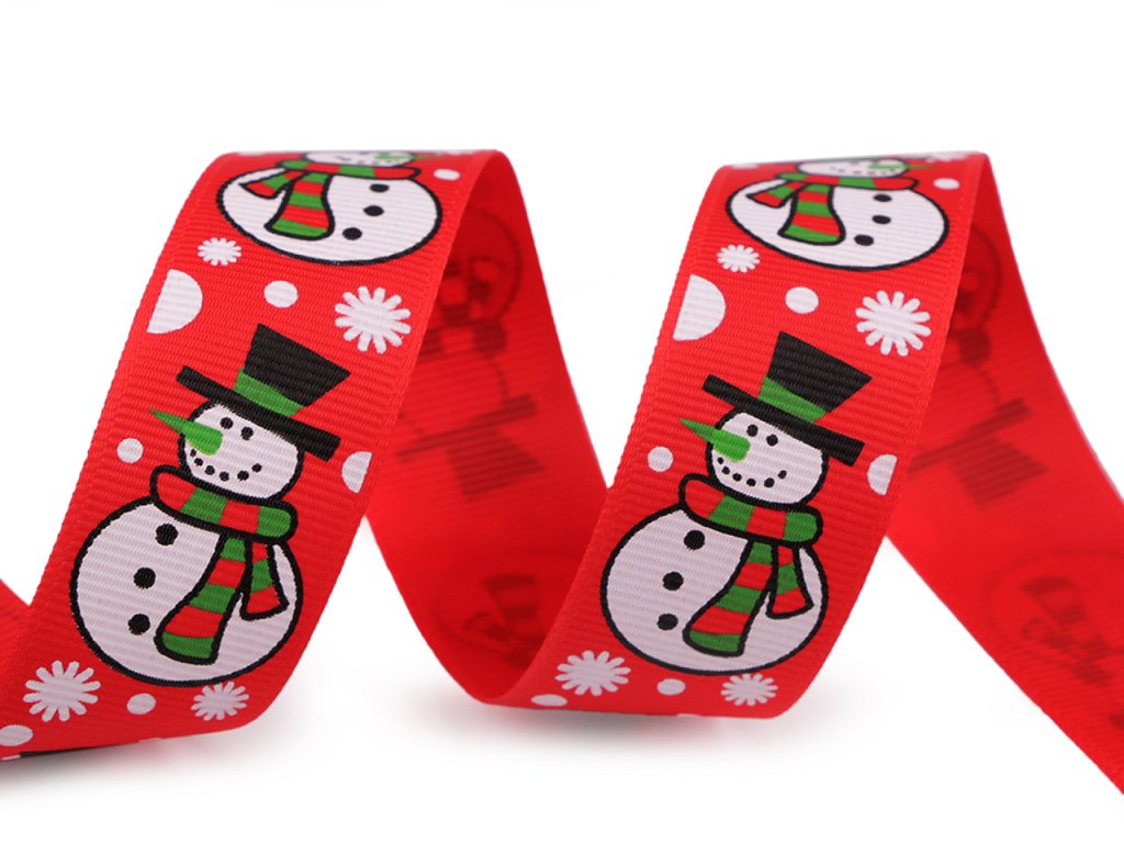 Dekorační rypsová stuha se sněhuláky je velice kvalitní. Na povrchu má typické jemné žebrování. Potisk je jednostranný.