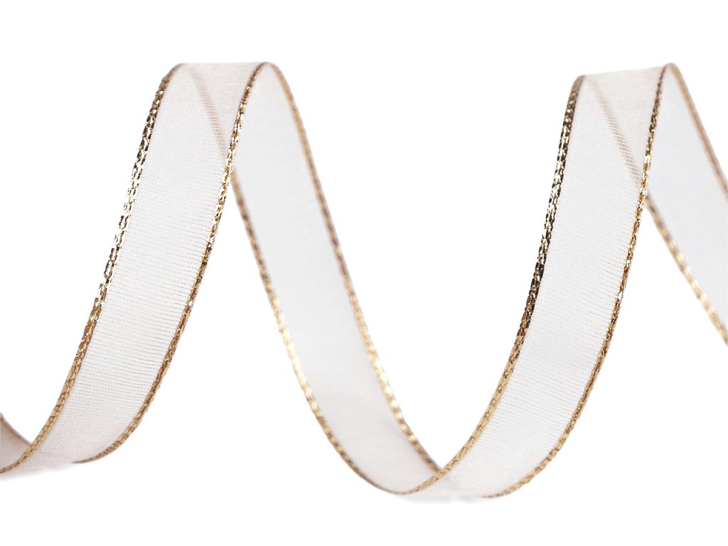 Monofilová stuha je průsvitná, ozdobená lurexovými okraji, které se působivě třpytí. Díky svému efektnímu vzhledu se stane nepostradatelným doplňkem při každé příležitosti, kde je žádoucí přidat trochu lesku a elegance.