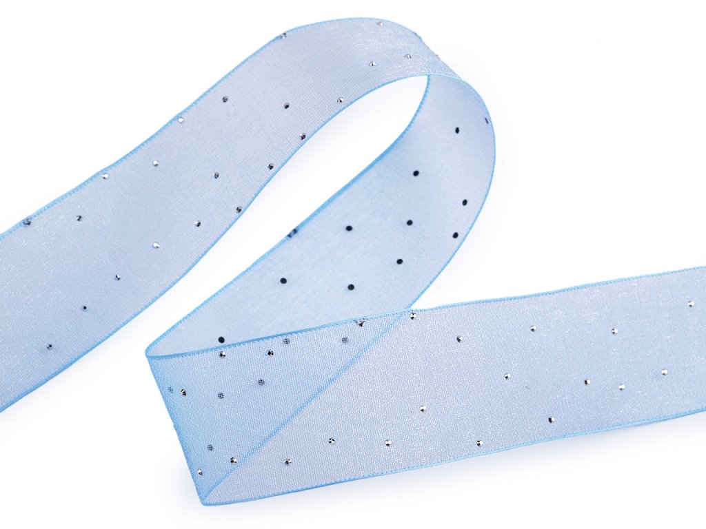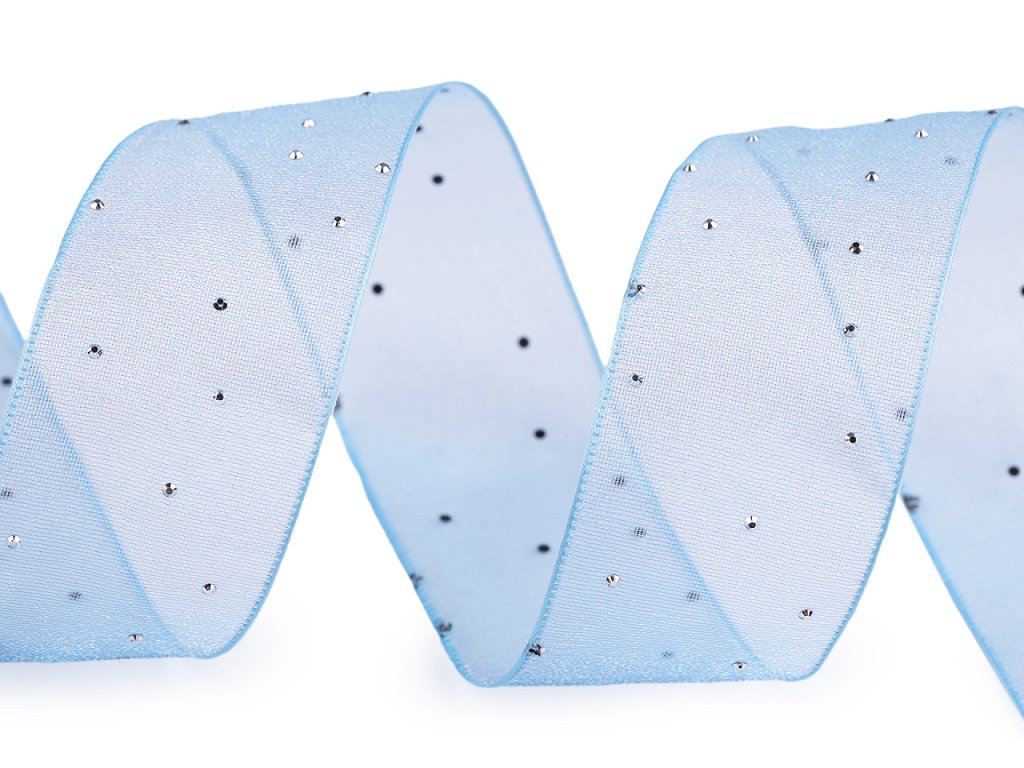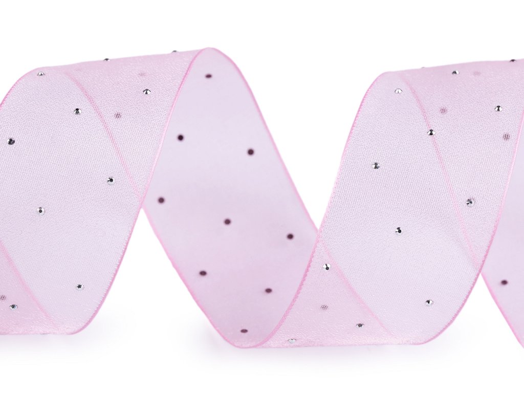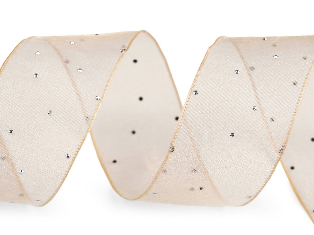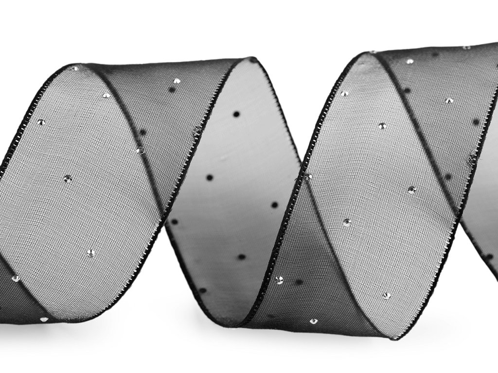 Organzovou stuhu zdobí drobné broušené kamínky, které se efektně třpytí. Je jemná, ale pěkně drží tvar.