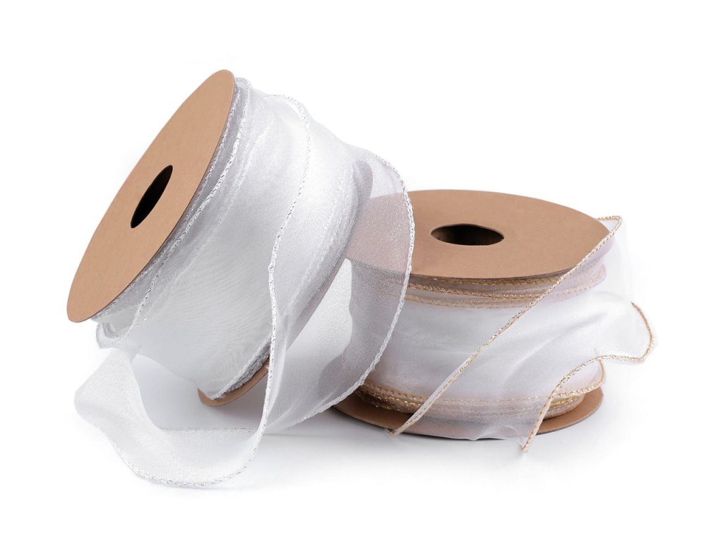 Organzová stuha s perleťovým leskem a lurexem šíře 50 mm