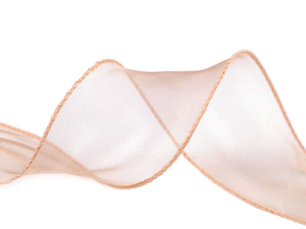 Široká monofilová stuha má jemný perleťový lesk. Po stranách je pevná, obšitá silonem. Jemně se vlní, vypadá velice elgantně.