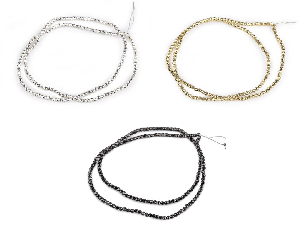 Skleněné korálky broušené ohňovky 2 mm metalické, na drátku