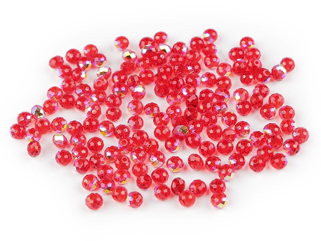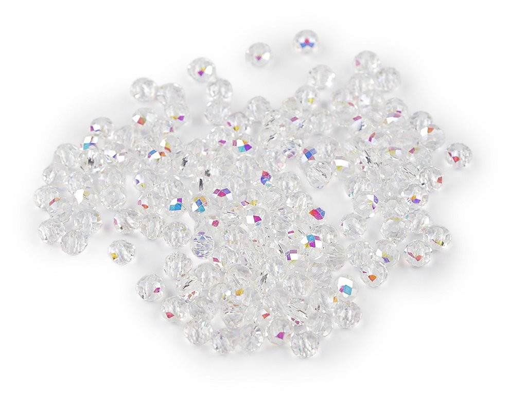 Skleněné broušené korálky ohňovky s AB efektem se vyznačují precizním broušením, které jim dodává jedinečný lesk a jemný vzhled. Jsou transparentní s povrchovou úpravou s AB efektem. Vynikají především svým třpytem. Díky své jednotné velikosti a tvaru jsou ideální pro precizní práci při tvorbě šperků.