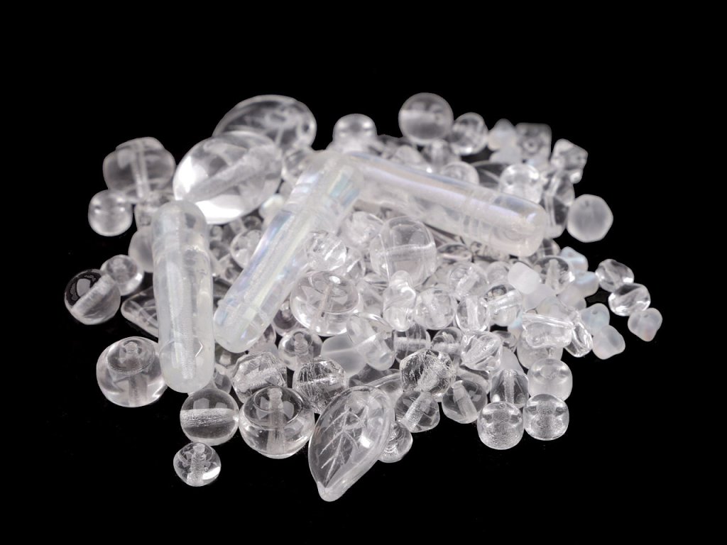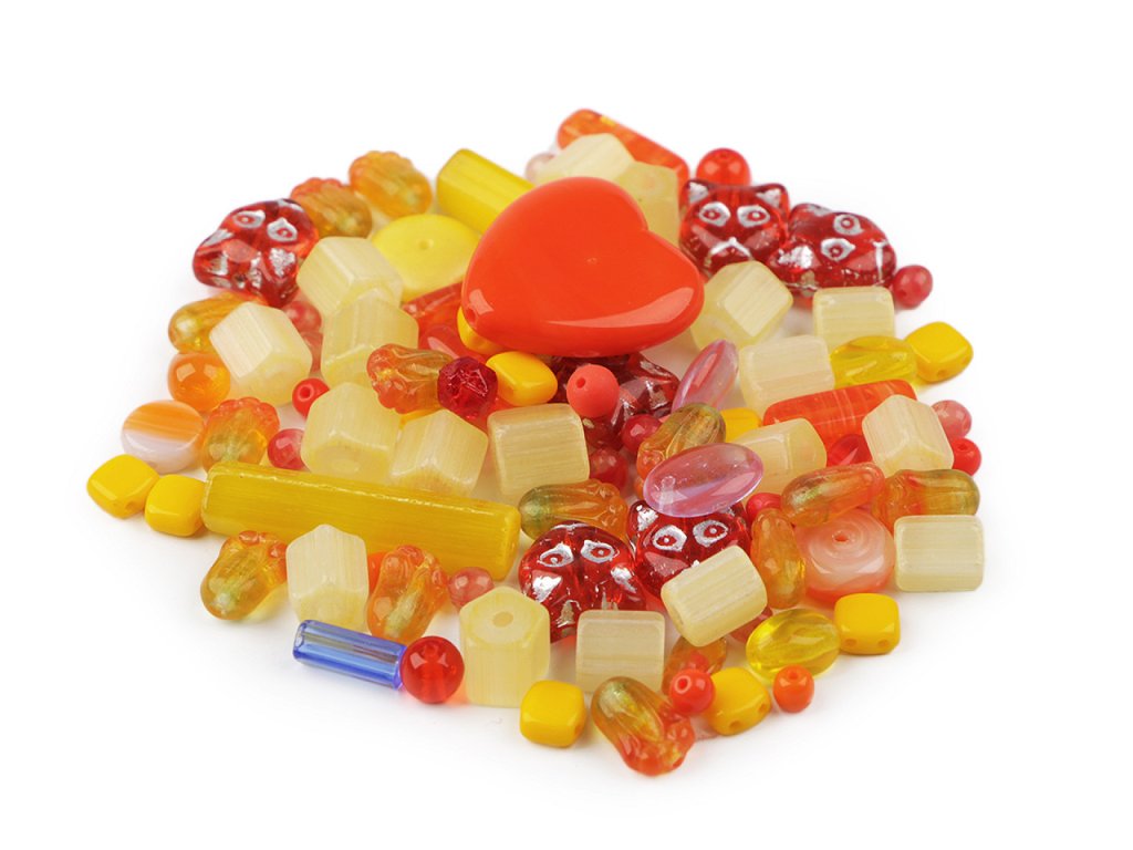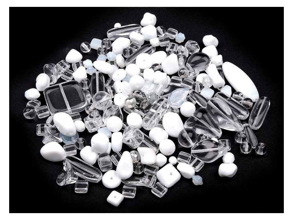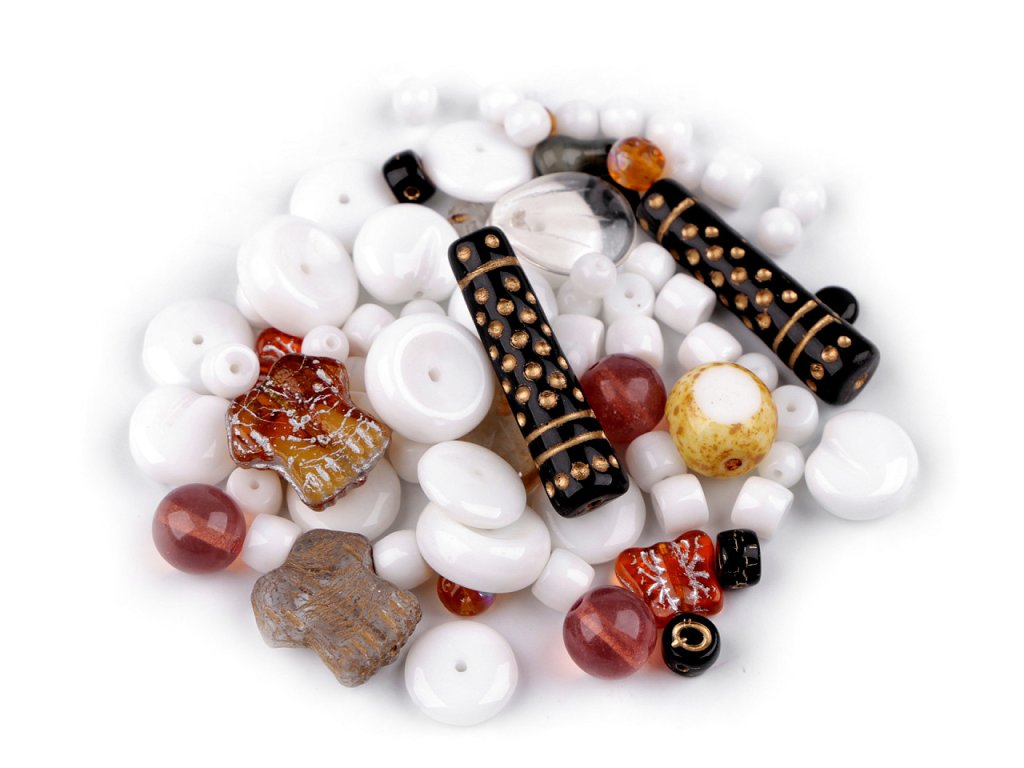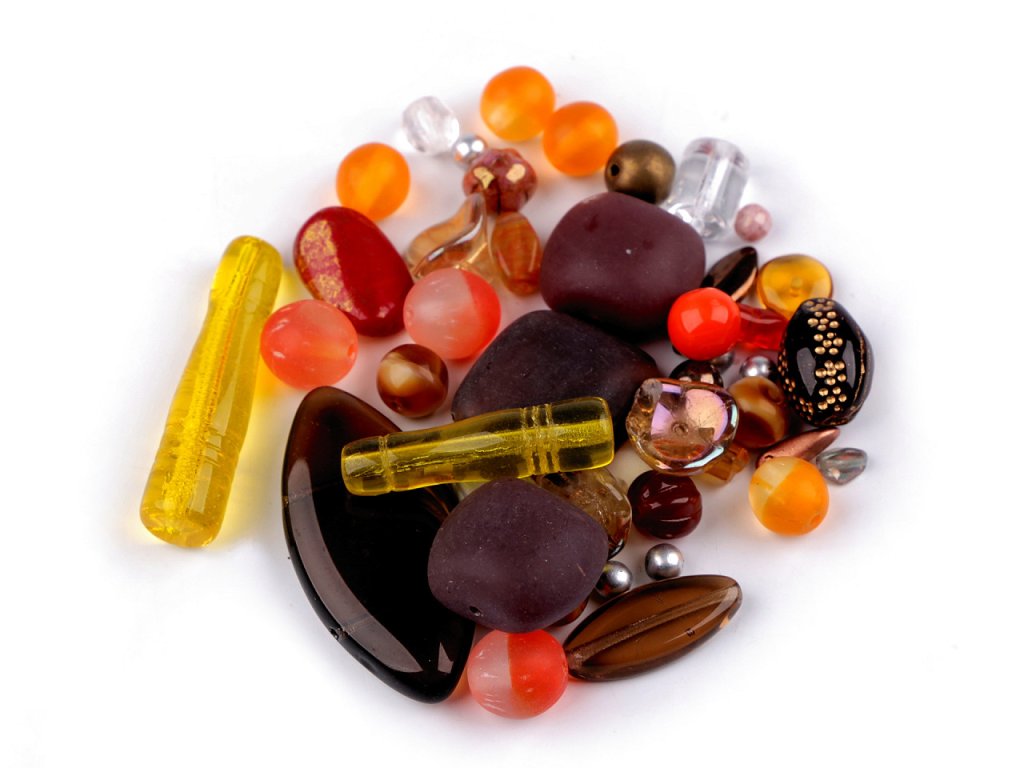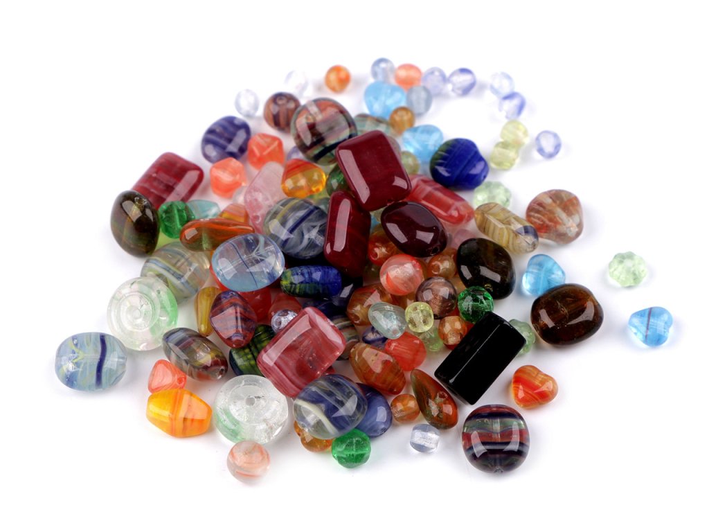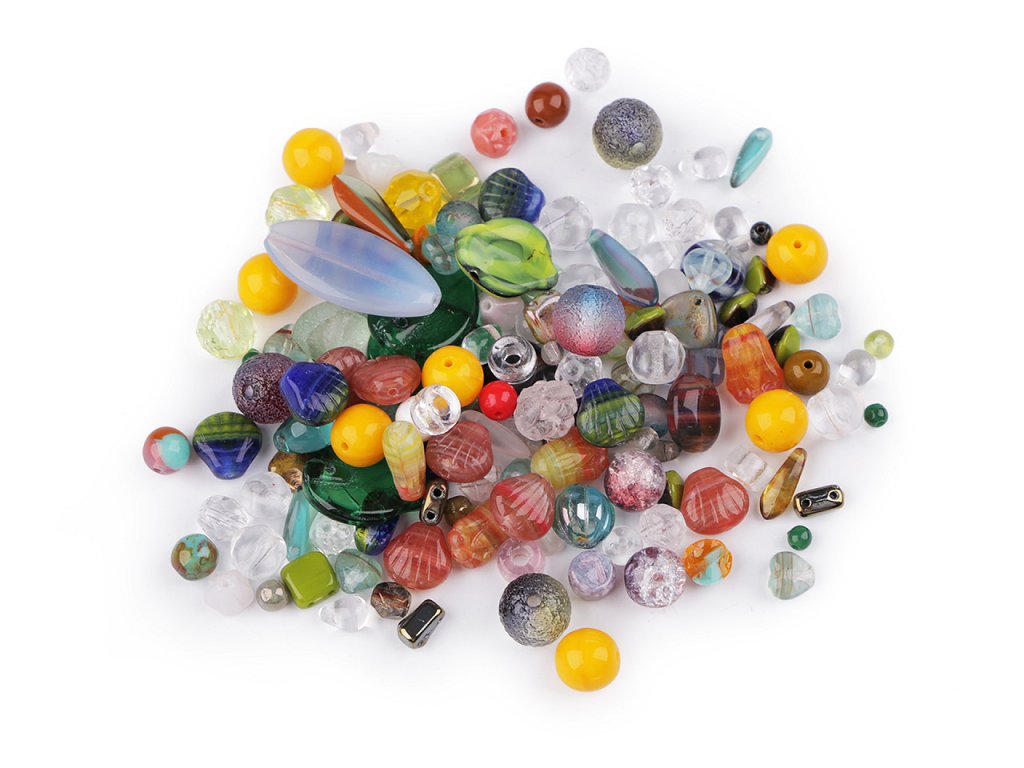Fotografie jsou ilustrační - v balení se mohou vyskytovat i jiné tvary a velikosti. Ramš je velmi oblíbený pro svoji pestrost. Korálky jsou vyrobeny ze skla. V balení najdete např. kuličky, ohňovky, lístečky, oválky, zvonečky, olivky, jazýčky, srdíčka a jiné druhy, v různých velikostech.