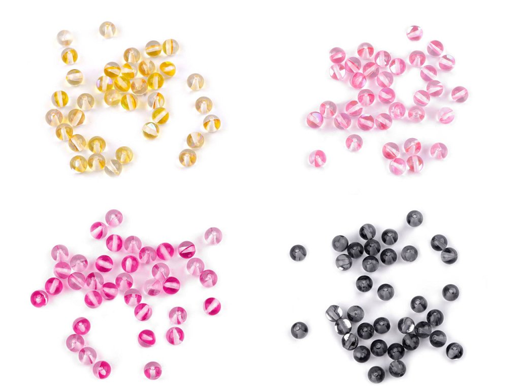 Skleněné korálky jsou průhledné, vysoce lesklé, díky jemnému vnitřnímu probarvení mají nezvyklý AB efekt, který je velice efektní. Našim fotografům se fotografie velmi povedly, ale věřte, že ve skutečnosti jsou korálky ještě zajímavější. Svou velikostí jsou ideální na výrobu Buddhových náramků, kde se používají buď samostatně nebo v kombinaci s drahými minerály. Jsou oblíbené na techniku drátování, v kombinaci s drahými kovy, ale i s obyčejnými drátky. Skvěle vypadají i na jednoduchých návlekových šňůrách.