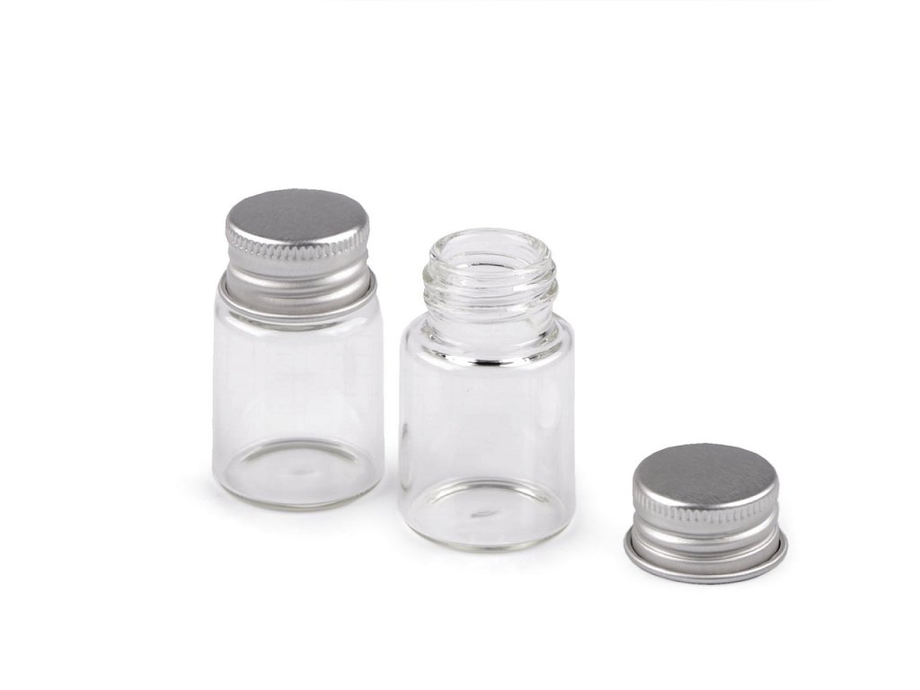Skleněnou lahvičku s kovovým šroubovacím uzávěrem využijete k dekoračním i praktickým účelům. Cestovatelům se bude hodit k přenosu menšího objemu tekutin, šampónů, sprchových gelů, apod. Ocení ji výrobci domácí kosmetiky nebo výrobci šperků z bižuterie, kteří ji využijí k uložení jednotlivých bižuterních komponentů.