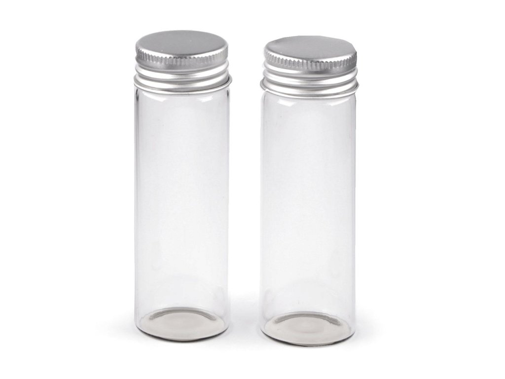 Skleněnou lahvičku s kovovým šroubovacím uzávěrem využijete k dekoračním i praktickým účelům. Cestovatelům se bude hodit k přenosu menšího objemu tekutin, šampónů, sprchových gelů, apod. Ocení ji také výrobci šperků z bižuterie, kteří ji využijí k uložení jednotlivých bižuterních komponentů.