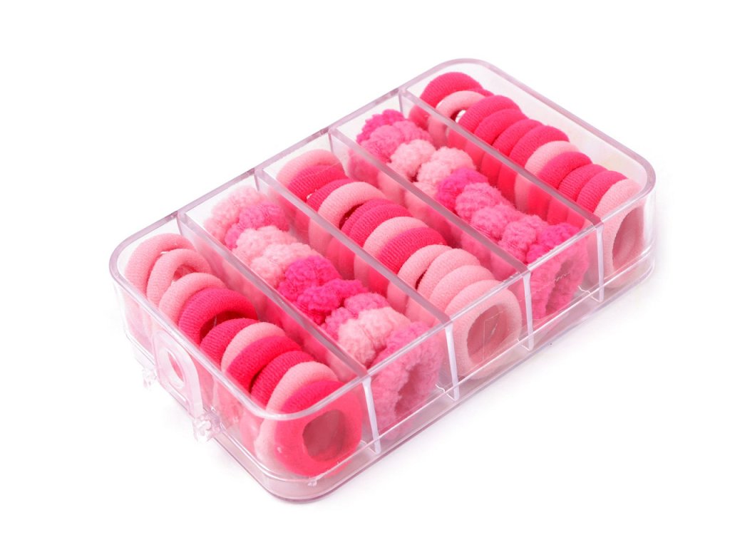 Sadu malých gumiček do vlasů ocení holčičky, které rády tvoří různé účesy. Gumičky jsou uloženy v praktickém plastovém boxu s 5 přihrádkami a lze ho dokonce zavěsit. To znamená, že malé slečny budou mít své gumičky vždy po ruce, a mohou se tak nechat unést svou kreativitou při vytváření zajímavých účesů.