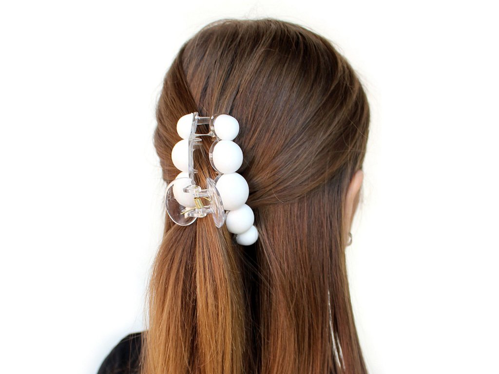 Velký módní skřipec do vlasů vytvoří zajímavý účes během chvilky. Je po stranách ozdobený matnými 3D bublinami. Oceníte jeho rychlé, všestranné a jednoduché použití. Je vhodný na každodenní nošení. Má zaoblené zuby, pevný stisk, ve vlasech dobře drží.