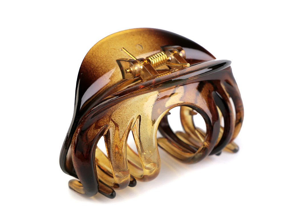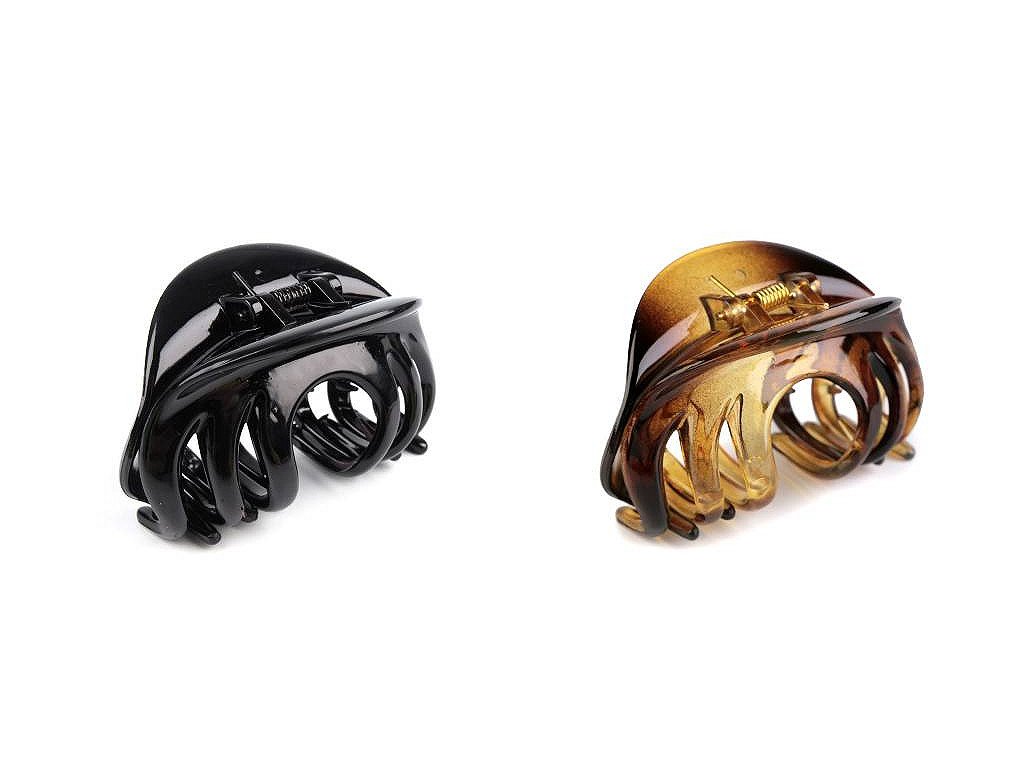 Velmi oblíbené ozdoby do vlasů jsou skřipce. Plastové skřipce mají netradiční tvar zaoblených zubů, díky kterým získávají elegantní vzhled. Mají pevný stisk, ve vlasech budou dobře držet i v hustějších vlasech. Skvěle doplní váš účes. Rozměry: 45 x 75 mm (šířka x délka).