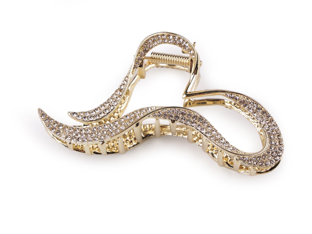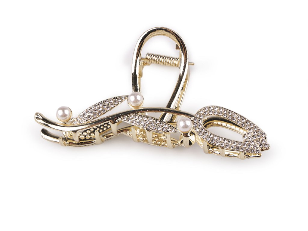 Kovový skřipec do vlasů je bohatě zdobený třpytivými broušenými kamínky, díky nimž je nepřehlédnutelný. Vytvoří slavnostní účes během chvilky, oblíbíte si jej i na všední nošení. Je velice kvalitní, drží přesně na místě díky svému silnému stisku a dlouhých zubů.