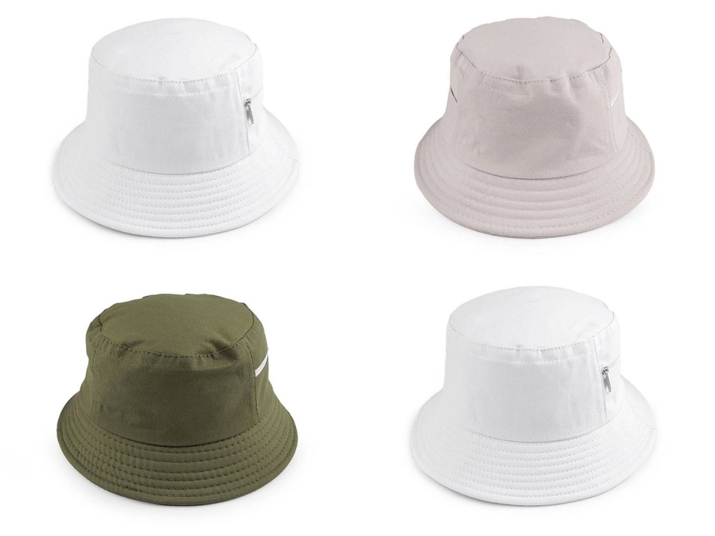 Letní klobouk je stylovým a praktickým doplňkem, který vás ochrání před slunečními paprsky. Na jednom boku má kapsičku na zip, na druhé straně má plochou kapsičku bez zipu.