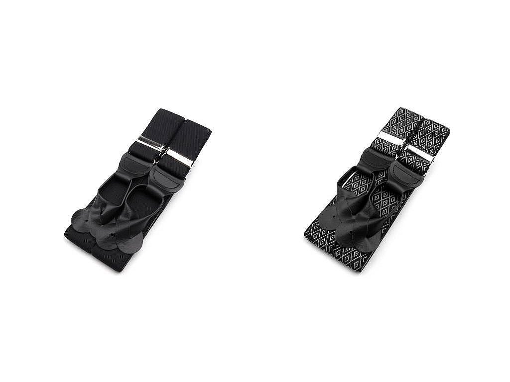 Pánské šle JAN české výroby o šířce 3,5 cm a délce 120 cm. Šle jsou vyrobené z polyesteru a elastodienu. Šle postrádají klasické kovové žabky. Na koncích mají úchyty na zapnutí za knoflíky, která jsou vyrobená z eko kůže. Šle jsou ideálním doplňkem pro muže, kteří mají rádi nevšední věci.