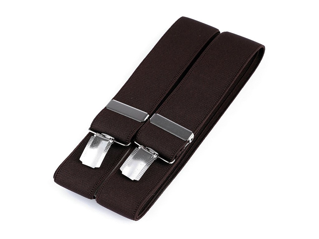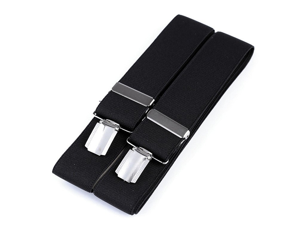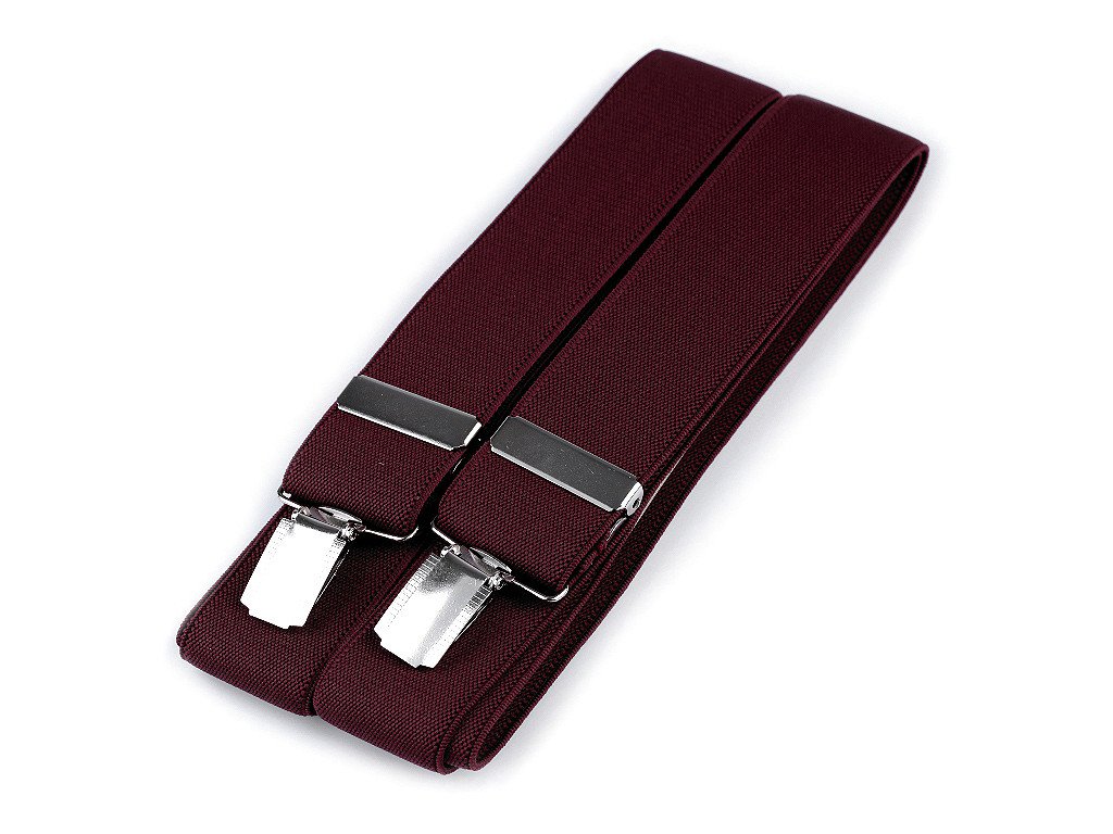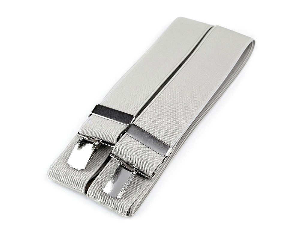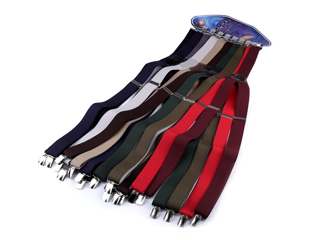 Jednobarevné šle jsou kvalitní české výroby. Elastický materiál umožňuje pohodlné nošení. Zadní vsadka z eko kůže jim dodává stylový vzhled. Ke kalhotám se upevňují na tři žabky - dvě vpředu a jednu vzadu.