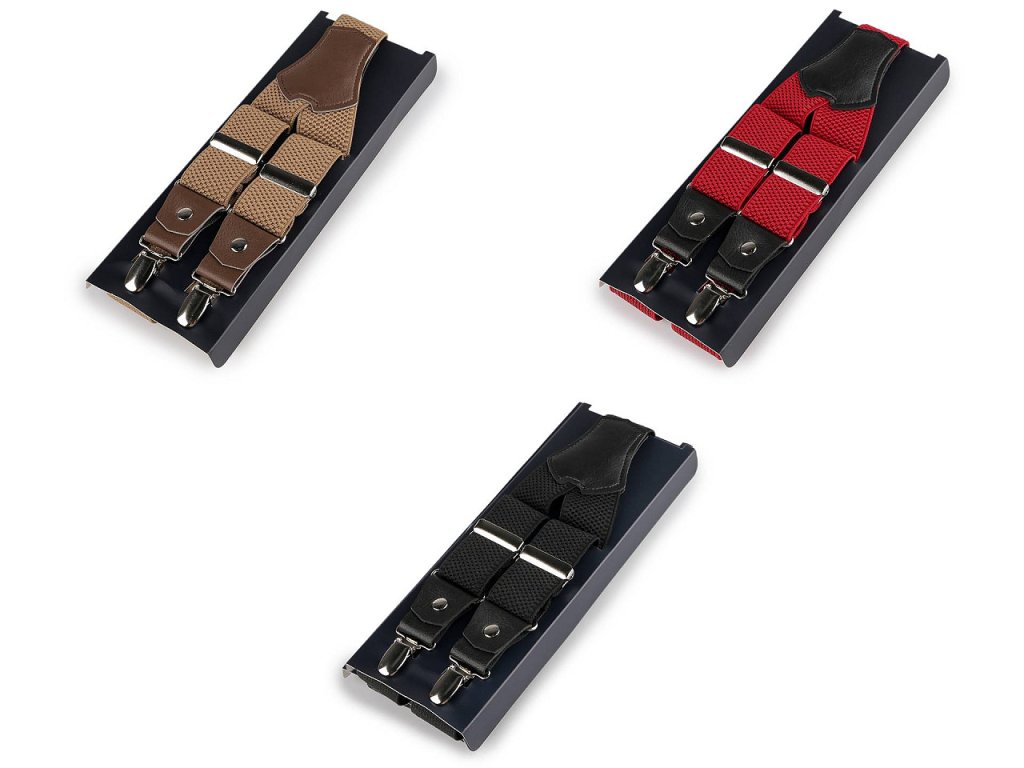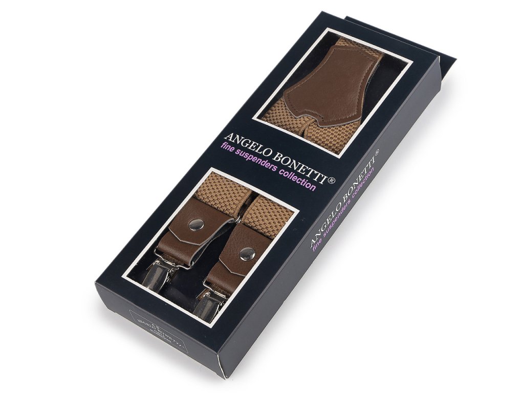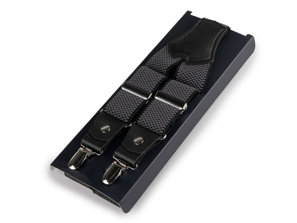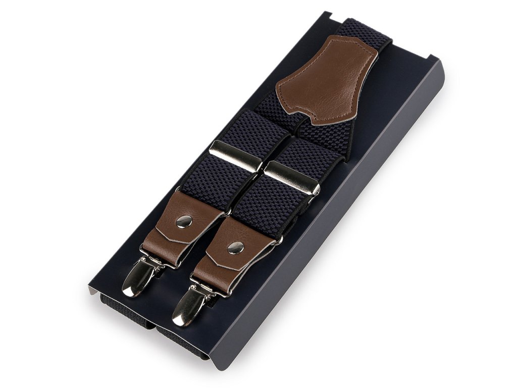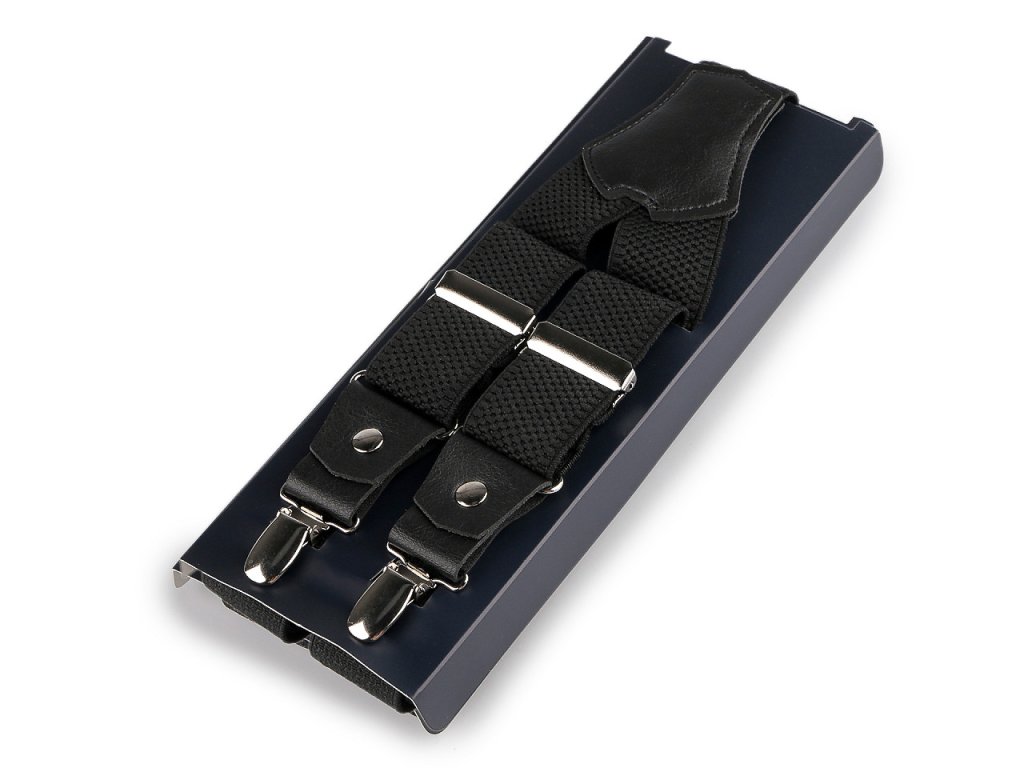 Elegantní pánské šle Angelo Bonetti jsou kvalitní české výroby. Kožené detaily jim dodávají stylový vzhled, jejich elastický materiál umožňuje pohodlné nošení. Mají čtyři žabky - dvě vpředu a dvě vzadu. Délku si můžete nastavit. Dají se použít jak pro denní nošení, tak jsou vhodné i k obleku. Můžete je nosit i k lyžařským a jiným sportovním kalhotám. Jsou kvalitní, vyrobené z polyesteru a elastanu. Mají dárkové balení v krabičce. Tyto pánské šle budou ideálním dárkem pro muže, kteří mají rádi styl.
