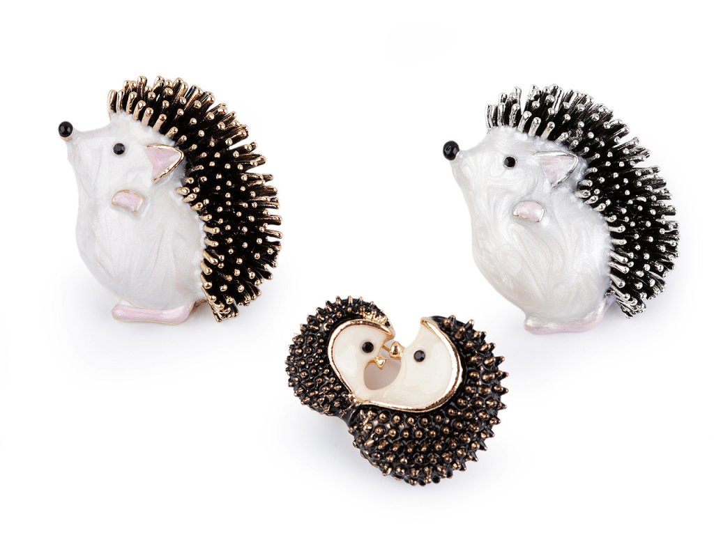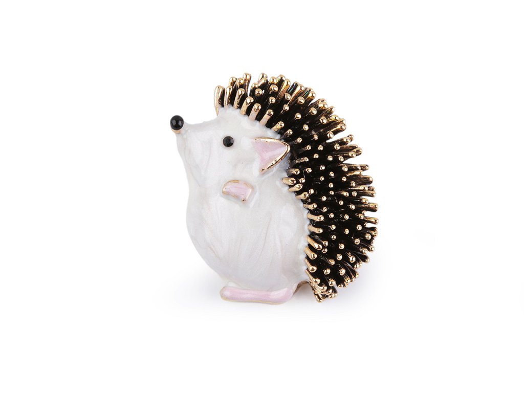 Brož ježka s barevným smaltem bude zajímavou ozdobou vašeho oděvu. Je perfektně zpracovaná s precizním zaměřením na detaily. Smalt má perleťový nádech, bodliny mají kovový lesk. Ze zadní strany je brožový špendlík.