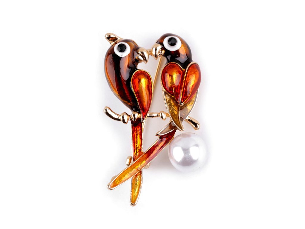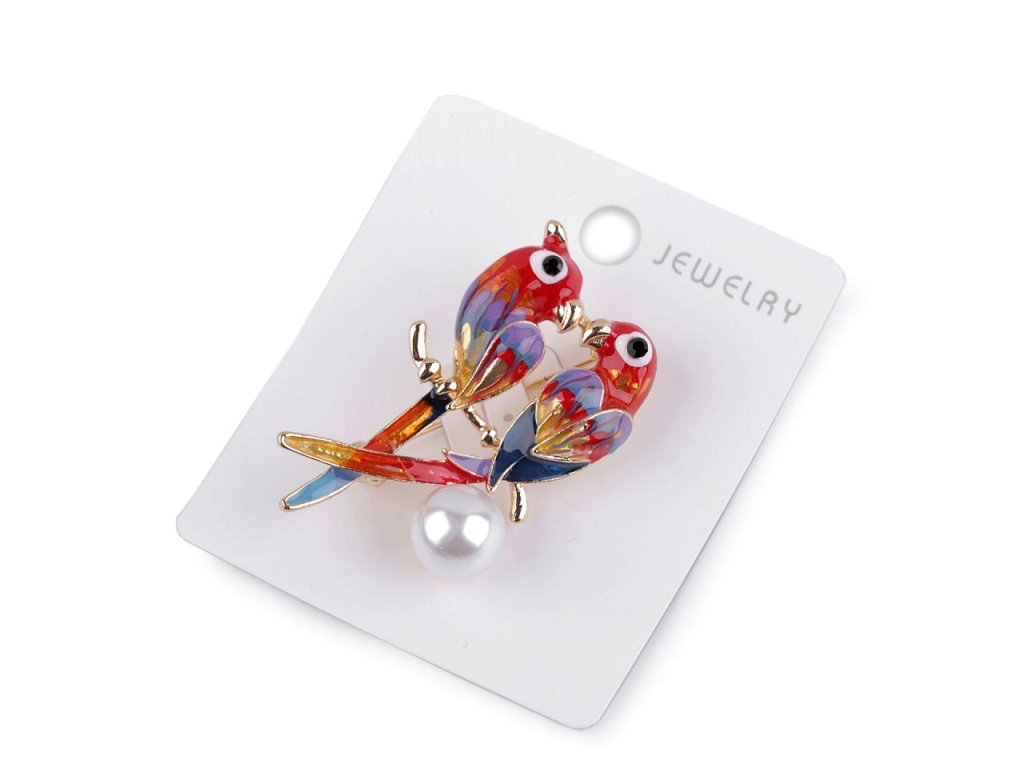 Brože č.1 a 2 - papoušci jsou ozdobené perlou.