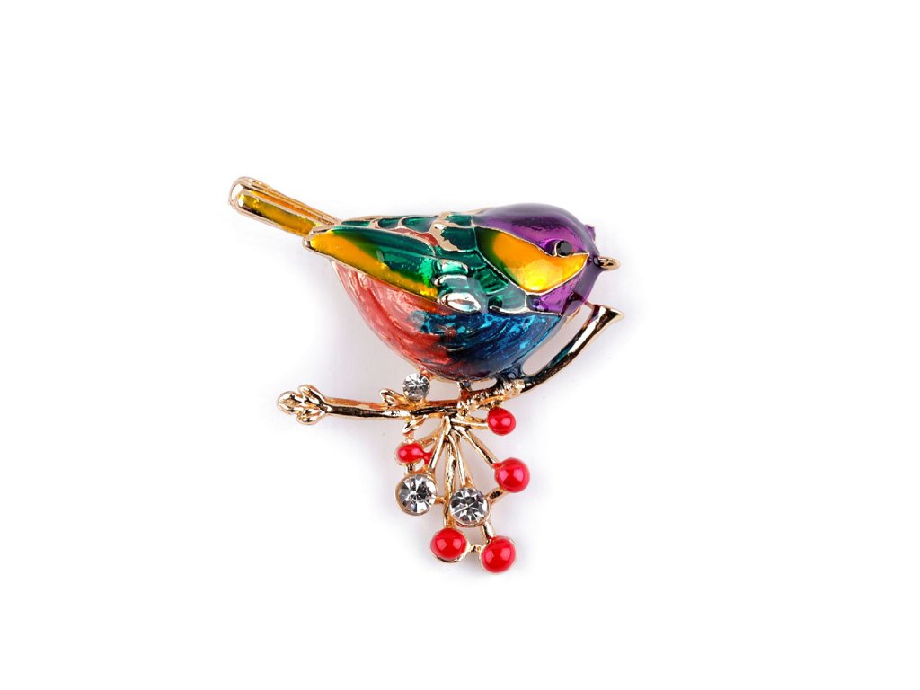 Brož ptáčků s barevným smaltem vás uchvátí svou pestrou hrou barev. Je velice milá a elegantní, můžete ji využít na běžné nošení i na společenské události - návštěvy divadel, oslavy apod. Z rubu má brožový špendlík. Můžete ji nosit nejen na oděvech, hodí se i k ozdobení klobouků, tašky či sepnutí šátku.