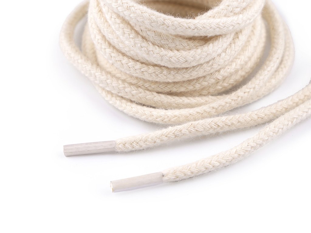 Kulaté bavlněné tkaničky jsou opatřené koncovkami. Využijete je nejen do bot, ale také do tunýlků bund, mikin, tepláků a jiných oděvů.