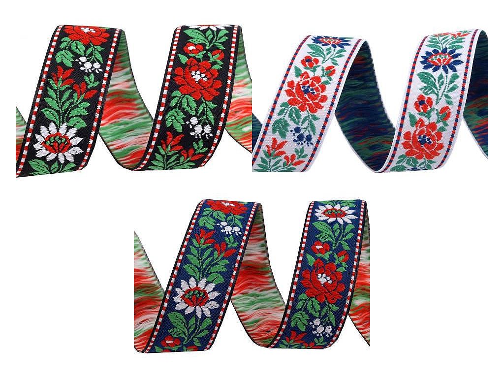 Krojovou vzorovku určenou původně ke zdobení krojů, dnes využíváme i ke zdobení na běžné oděvy, prádlo, bytové textilie, hračky a upomínkové předměty. Použití je variabilní. Stuhy vyniknou svou barevností na látce různého dezénu a barvy. Jsou tkány na jehlových stavech a vyrábějí se již jen v materiálu polyester! Dodáváme v návinu po 25 m.