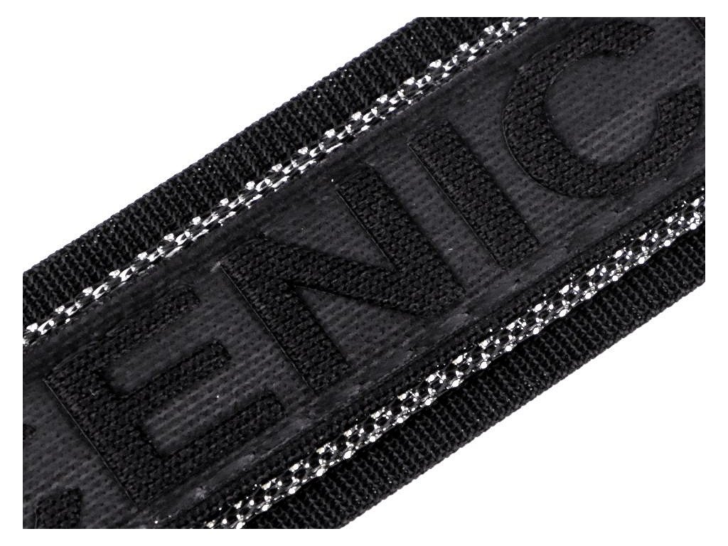 Kombinovaný lampas zdobí pololesklá našitá stuha s prošívaným nápisem Nice. Po stranách je navíc zvýrazněná třpytivým lurexem. Lampas je jednostranný, velice pevný, spodní část je z rypsové stuhy.