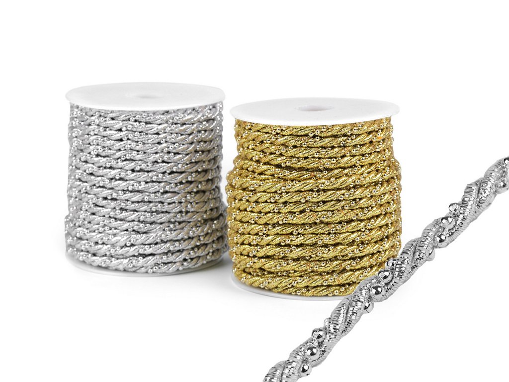 Lurexová kroucená šňůra s kuličkovým řetízkem Ø5 mm