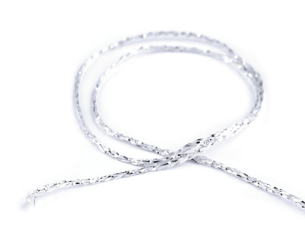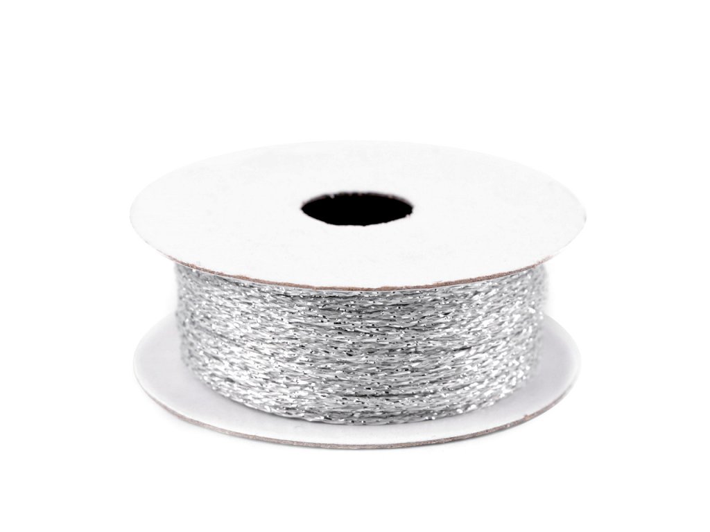 Splétaná šňůrka se díky lurexovému vláknu elegantně třpytí. Nevšedně s ní zabalíte a ozdobíte dárky, využijete k různým dekoračním účelům, nebo ji můžete použít jako navlékací materiál při výrobě náhrdelníků, náramků, apod.