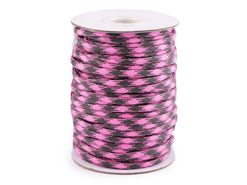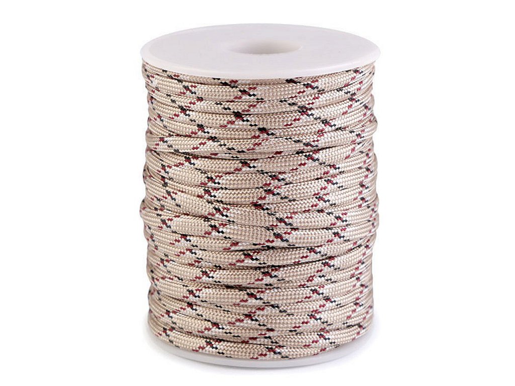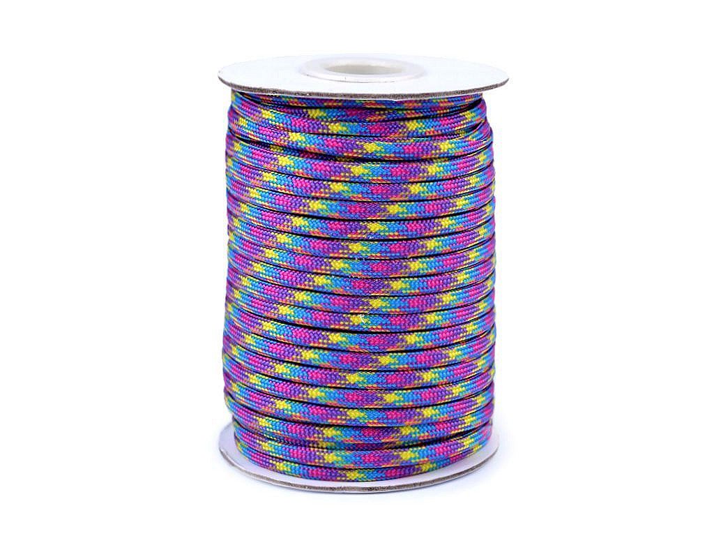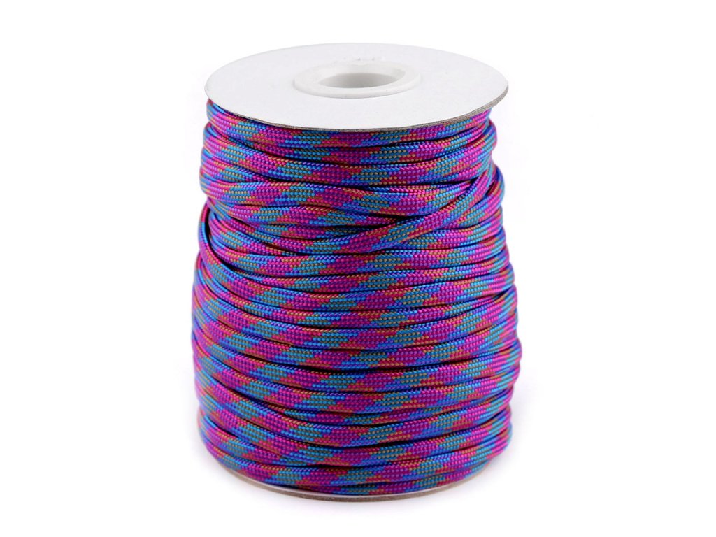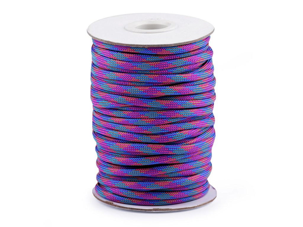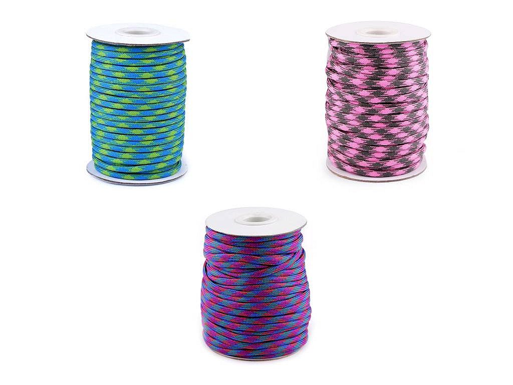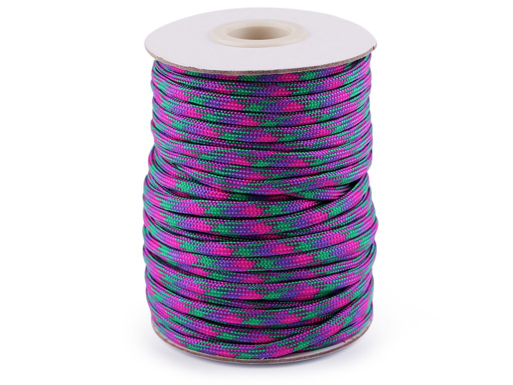 Použití: Padákovou šňůru využijete všude, kde potřebujete cokoliv přivázat. Určitě byste ji měli mít po ruce při kempování, turistických výletech či cestování. Často se s ní setkáte při výrobě náramků, přívěsků, bižuterie. Dále z ní lze vyrobit obojky, vodítka, opasky atd. Je vhodná i na výrobu dekorací.