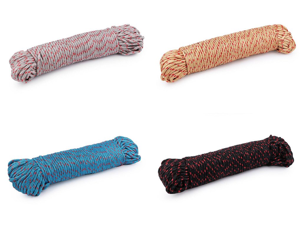 Použití: Padákovou šňůru využijete všude, kde potřebujete cokoliv přivázat. Určitě byste ji měli mít po ruce při kempování, turistických výletech či cestování. Můžete z ní vyrobit obojky, vodítka, opasky atd. Je vhodná i na výrobu dekorací. Neslouží jako bezpečnostní šňůra.