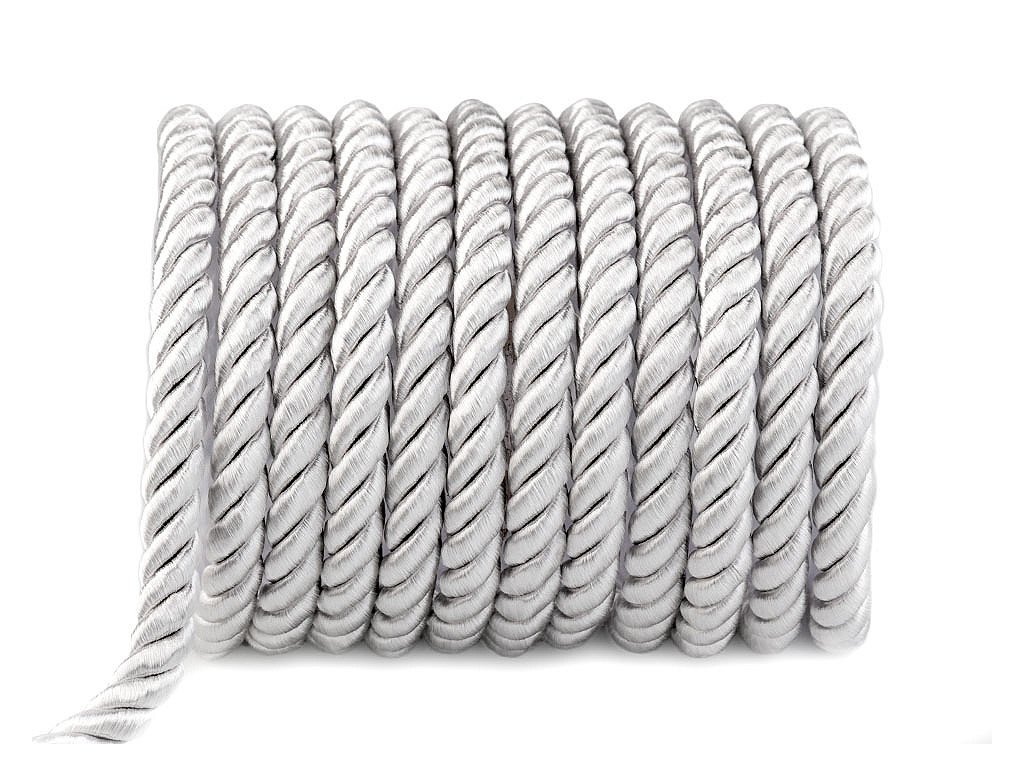Kroucená šňůra vás zaujme svým vysokým leskem. Je pevná, složená ze 3 provázků. Jednotlivé provázky mají bavlněné jádro opletené polyesterem a viskózou, která způsobuje poutavý lesk.