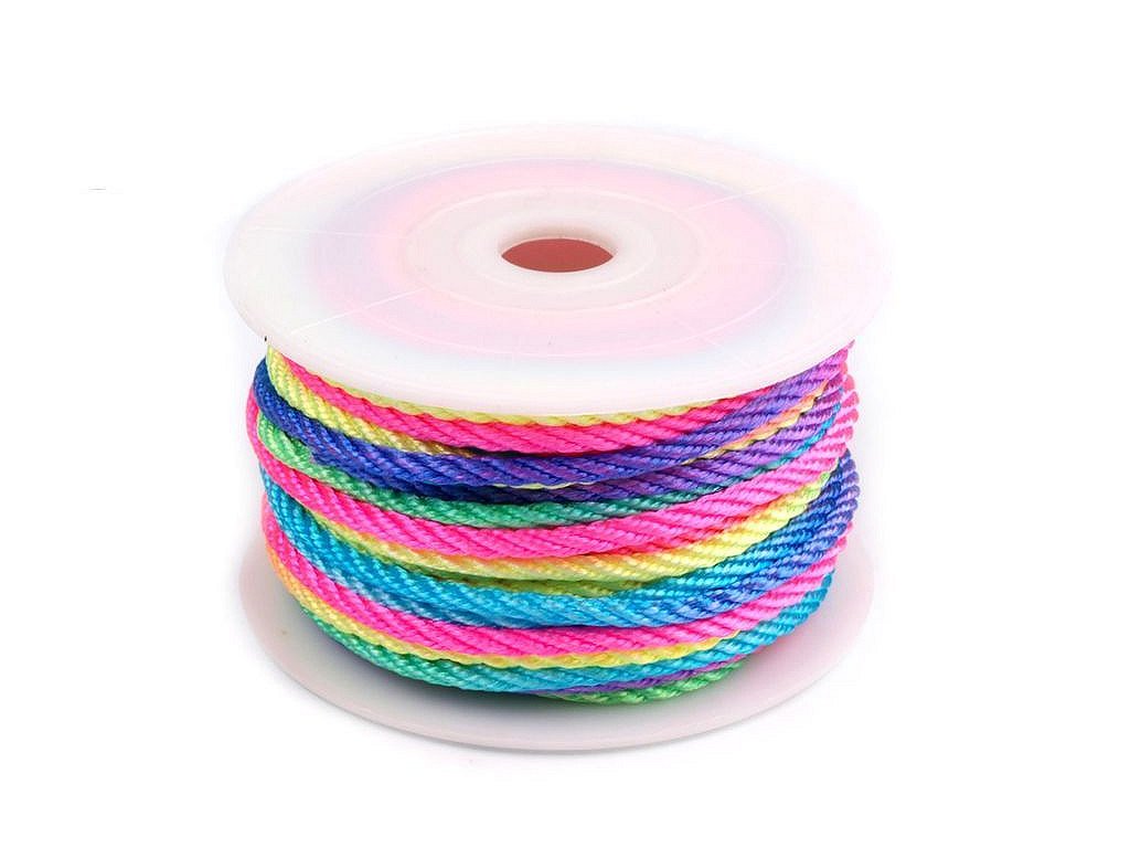 Kroucená šňůra v zářivých barvách vás zaujme svým vysokým leskem. Rozhodně ji nikdo nepřehlédne. Netřepí se. Je pevná a poddajná.Použití: Šňůra najde své využití v textilním průmyslu, v čalounictví apod. Její vlastnosti oceníte také při výrobě bižuterie (např. náramků nebo náhrdelníků).
