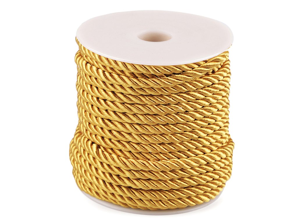 Kroucená šňůra zaujme nejen vysokým leskem, ale také její pevností. Je spletená ze 3 provázků. Jednotlivé provázky mají bavlněné jádro opletené polyesterem a viskózou, která způsobuje poutavý lesk.Použití: Šňůra se převážně používá v textilním průmyslu, v čalounictví apod. Její vlastnosti oceníte také při výrobě náramků nebo náhrdelníků. Své využití najde také jako dekorační či funkční materiál bytových doplňků.
