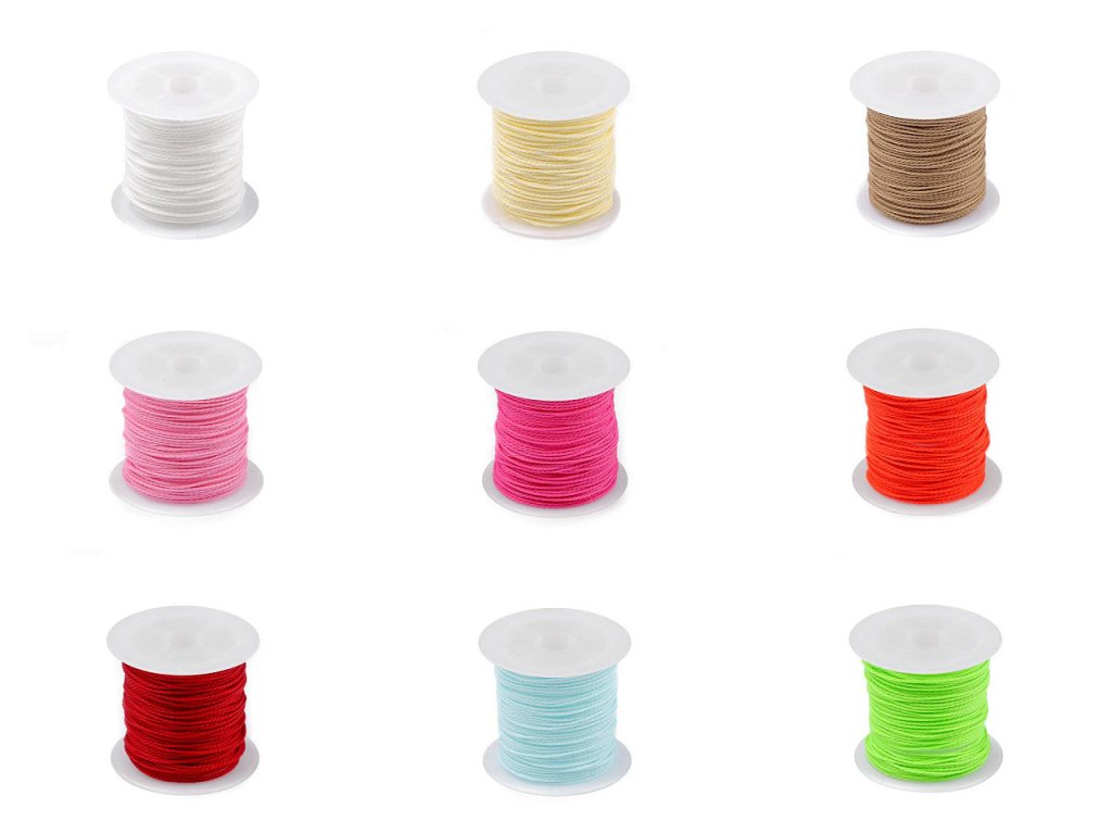 Použití: Šňůrka je vhodná na výrobu náramků nebo náhrdelníků pomocí techniky macramé. Skvěle se hodí na shamballa náramky. Můžete ji také využít jako návlekový materiál. Hodí se i na techniku scrapbooking - k zavěšení různých cedulek a visaček. Má i praktické využití pro textilní, oděvní, dekorační, čalounické a technické účely.