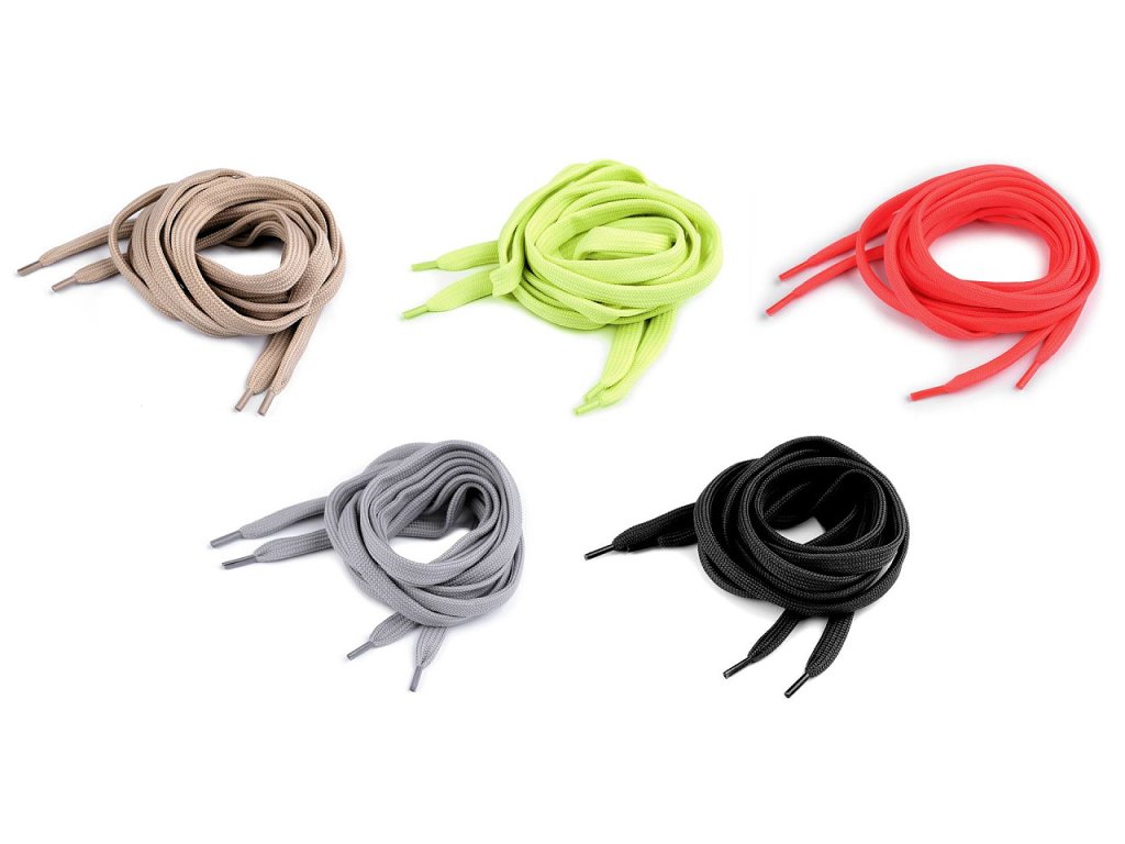 Ploché tkaničky jsou opatřené koncovkami. Využijete je nejen do bot, ale také do tunýlků bund, mikin, tepláků a jiných oděvů.