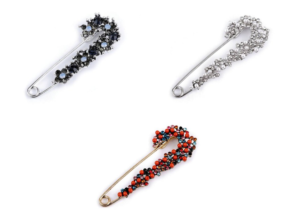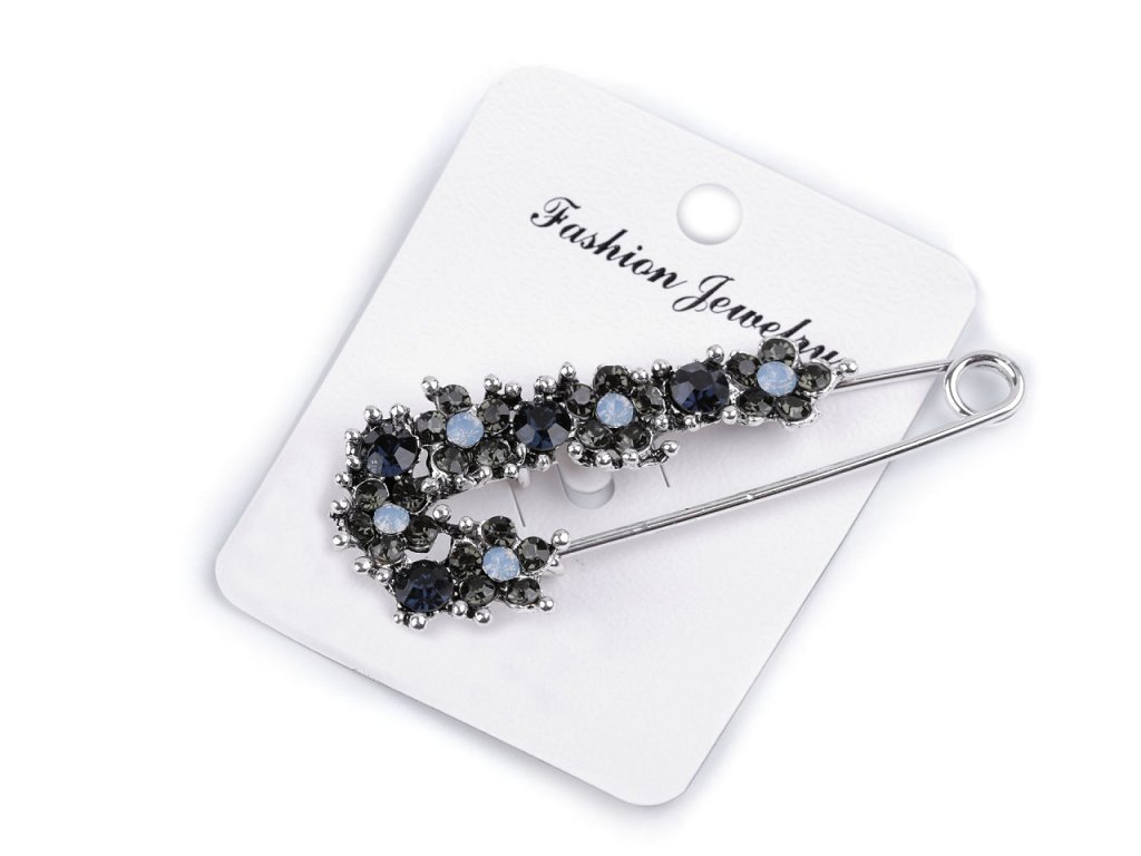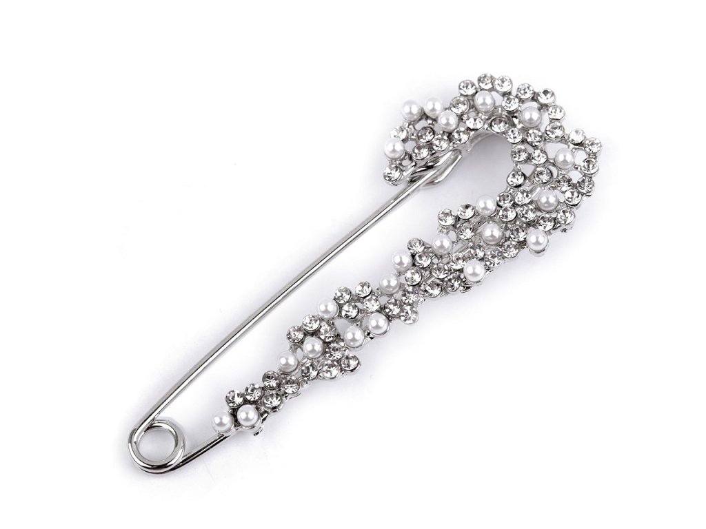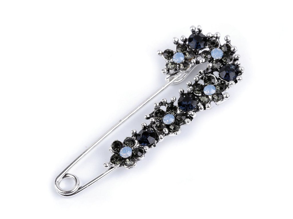 Velká elegantní brož s květy na spínacím špendlíku se díky osázení broušenými kamínky zajímavě leskne.
