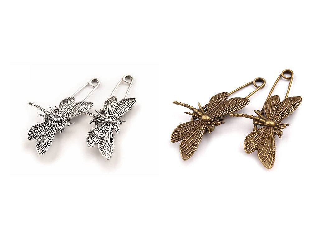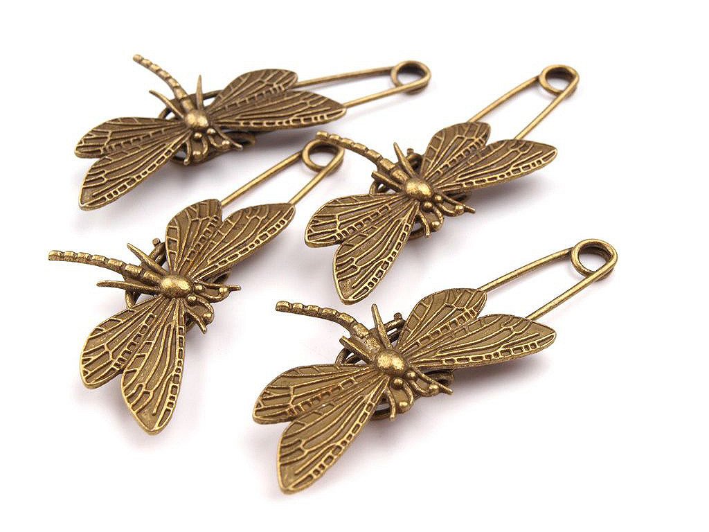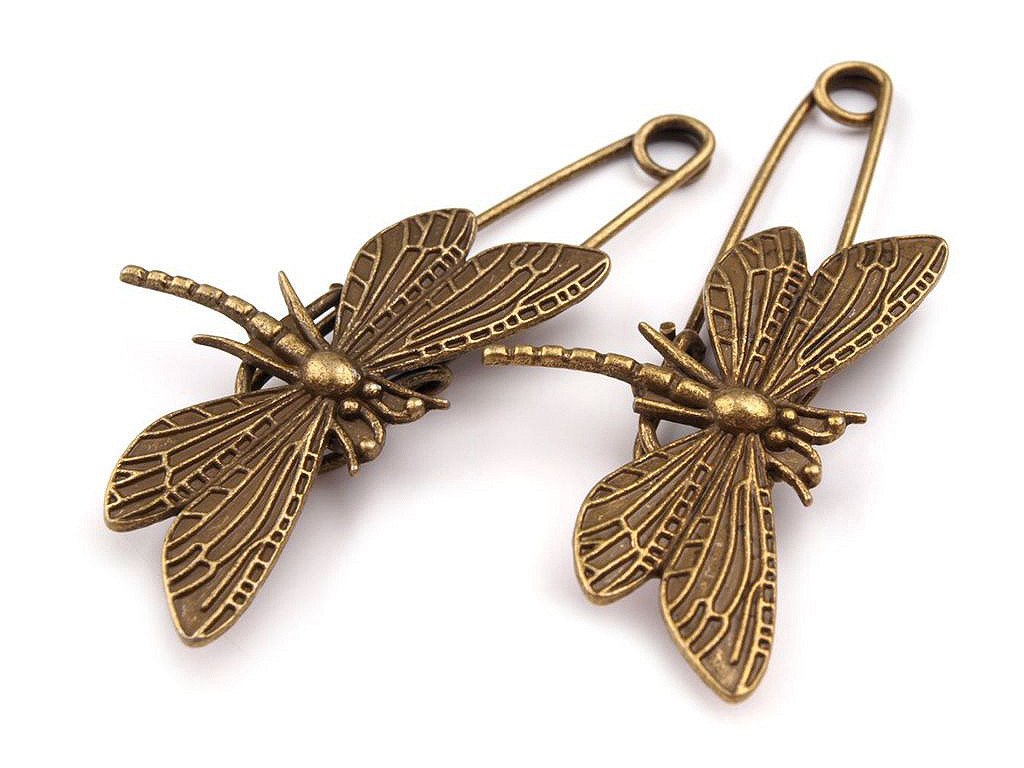 Zajímavá brož ve tvaru vážky na spínacím špendlíku.