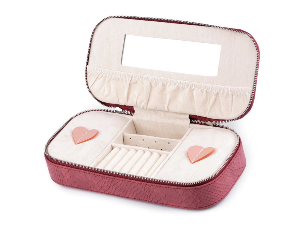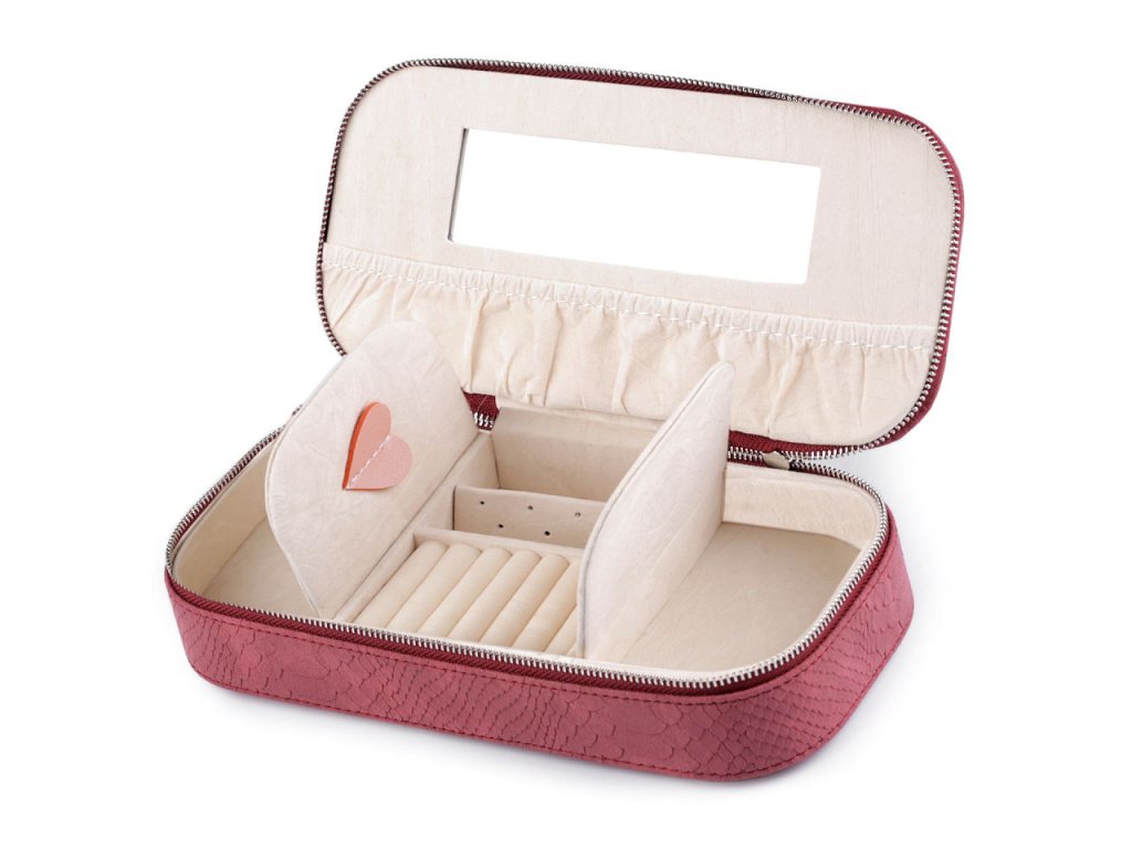 Šperkovnice se zrcátkem by neměla chybět v žádné dámské výbavě. Díky své kompaktní velikosti ji snadno uložíte do zásuvky, skříňky, nebo ji vezmete s sebou na cesty.