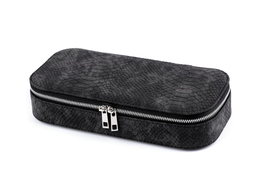 Elegantní provedení z eko kůže imituje hadí kůži. Šperkovnice se uzavírá na zip, ochrání šperky před nepříznivými vlivy okolí, jako je světlo nebo vlhkost.
