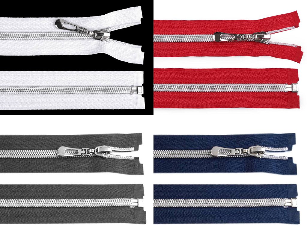 Dělitelný spirálový zip se stříbrnými zoubky využijete jako zapínání na bundy, kabáty, mikiny i sportovní tašky. Jezdec zipu je z nemagnetického kovu, očko, které ho spojuje se zipem je magnetické.
