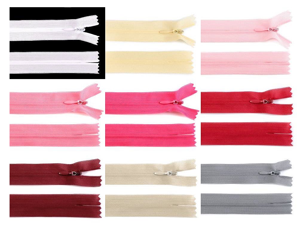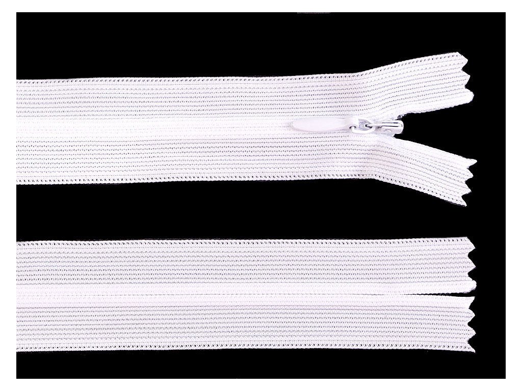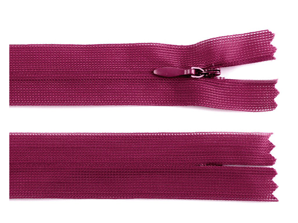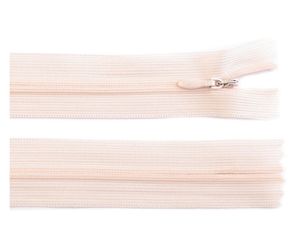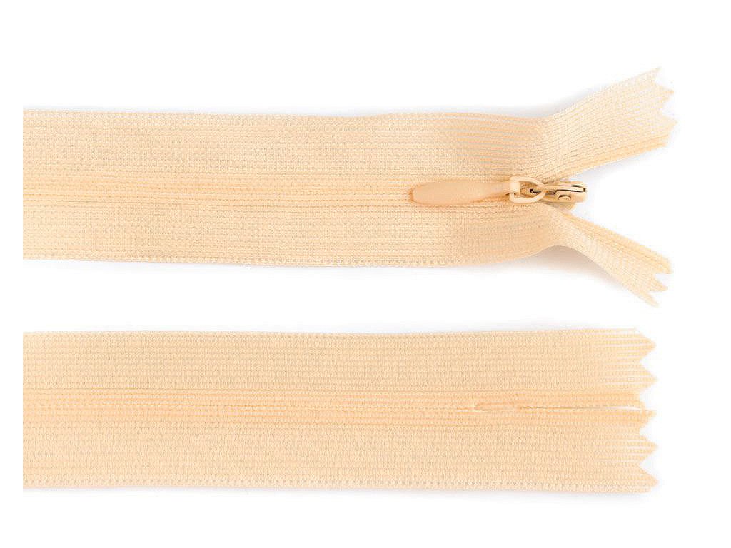 Skrytý spirálový zip je po našití prakticky neviditelný.