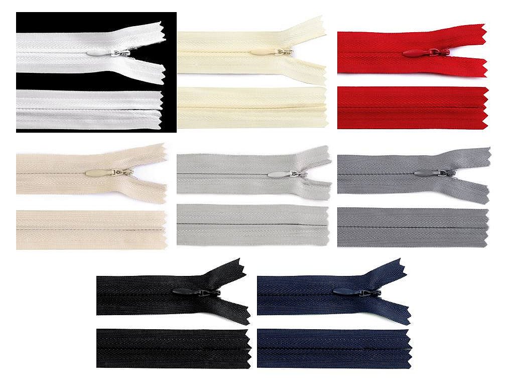 Spirálový zip je nedělitelný. Díky zakrytí spirály je po našití prakticky neviditelný.